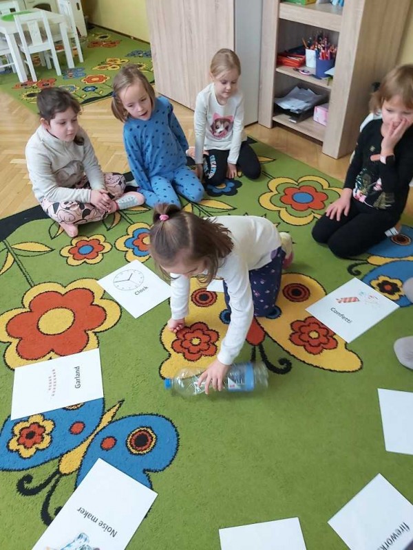 W ostatni tydzień grudnia na zajęciach z języka angielskiego dzieci przygotowywały się na nadejście Nowego Roku. Bawiły się, wiec słowami związanymi z Noworocznymi Zabawami.