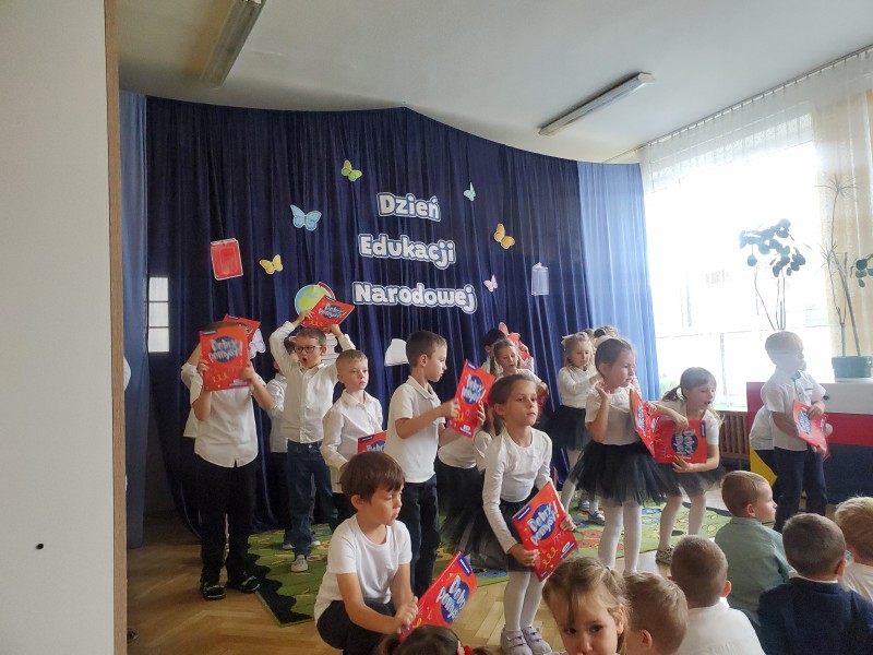 14 października w naszym przedszkolu uroczyście obchodziliśmy Dzień Edukacji Narodowej. Dzieci z każdej grupy zaprezentowały się w pięknych występach. Były piosenki, wiersze, tańce oraz gra na instrumentach. Przedszkolaki z zaangażowaniem przygotowały swoje występy, a na twarzach nauczycieli i pracowników pojawiły się uśmiechy i wzruszenie.