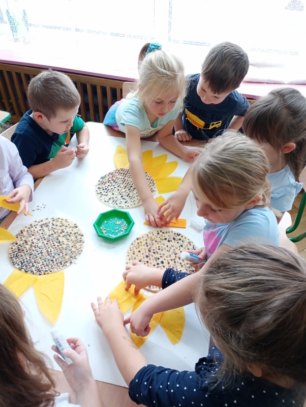 W piątek w naszym przedszkolu odbyła się niezwykła wystawa, której motywem przewodnim były słoneczniki przywiezione przez panią Wandzię. Te pełne słońca kwiaty stały się inspiracją dla małych artystów, którzy stworzyli prace w różnych technikach. Pani Wandzia, przywiozła swoje słoneczniki prosto z własnego ogrodu. Ich żywe kolory i naturalne piękno nadały wystawie niepowtarzalny charakter i stały się okazją do kreatywnego, słonecznego przedsięwzięcia.