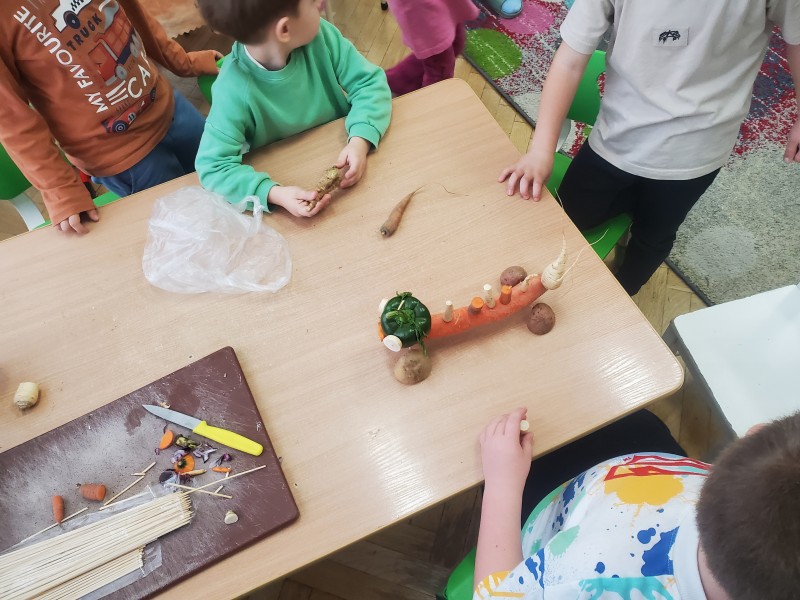 Zwieńczeniem tygodnia była wystawa kolorowych, pomysłowych warzywnych postaci wykonanych przez dzieci. Podczas tworzenia cudaków wszyscy świetnie się bawili, rozwijając wyobraźnię i zdolności manualne. To był smakowity, radosny i pełen kreatywności finał naszego warzywnego święta!