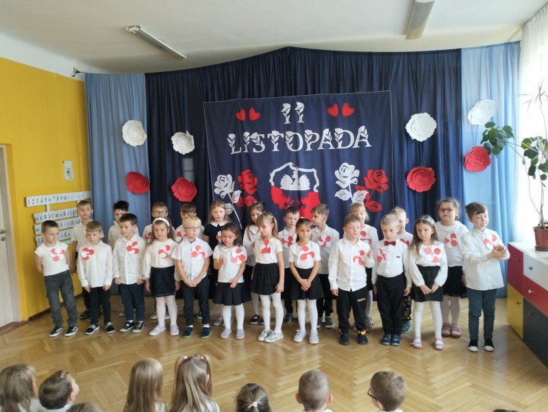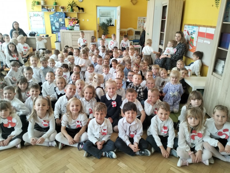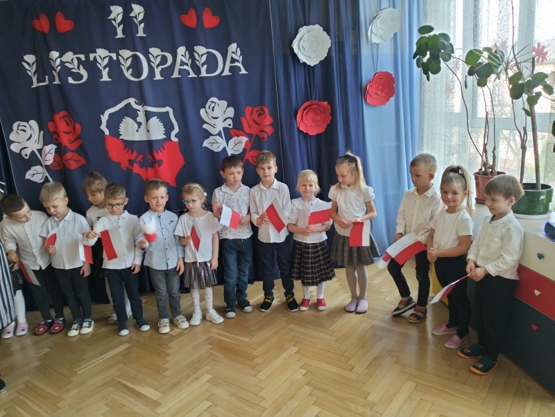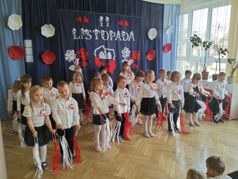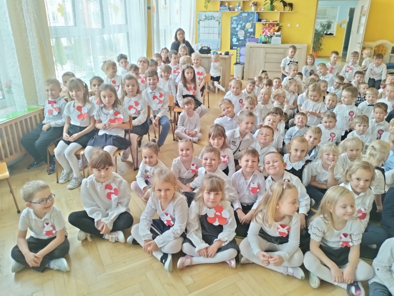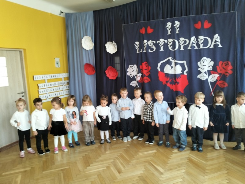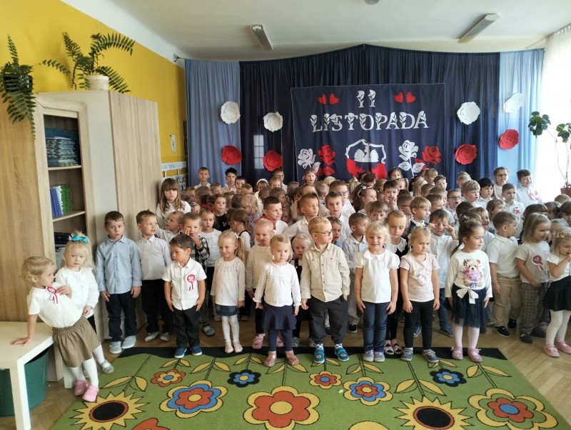 W związku z nadchodzącym Narodowym Świętem Niepodległości nasze przedszkole po raz kolejny włączyło się w ogólnopolską akcję Szkoła do hymnu. Tego dnia dzieci odświętnie ubrane recytowały wiersze, śpiewały piosenki oraz wykonywały prace plastyczne o tematyce patriotycznej, na koniec o 11:11 wszyscy wspólnie odśpiewali hymn Polski.