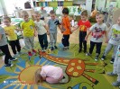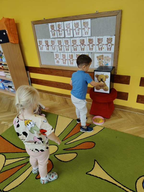 W sali czekało wiele atrakcji. Odbywały się misiowe gry i zabawy, podczas których przedszkolaki ćwiczyły spostrzegawczość, refleks i umiejętność współpracy. Wspólnie śpiewaliśmy piosenki o misiach, a największym hitem okazał się taniec z misiem, który wprowadził dzieci w świetny nastrój i pozwolił im wyrazić energię w rytmie muzyki.