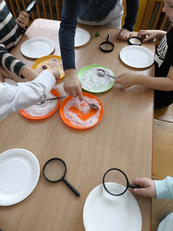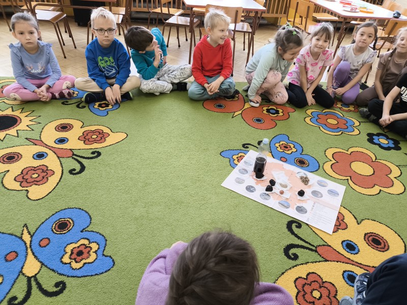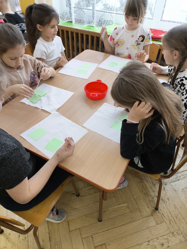 Dzieci dowiedziały sie co powstaje z ropy naftowej, poznały surowce mineralne wydobywane w Polsce. Przybliżona im została sylwetka pioniera przemysu naftowego - Ignacego Łukasiewicza. W trakcie doświadczeń dzieci sprawdzały jakie właściwosci mają różne materiały, które z nich przewodzą ciepło, które nie przepuszczają wody. Nasze starszaki z zainteresowaniem brały udział w zajęciach doświadczalnych i eksperymentach wielozmysłowych proponowanych w tym programie.