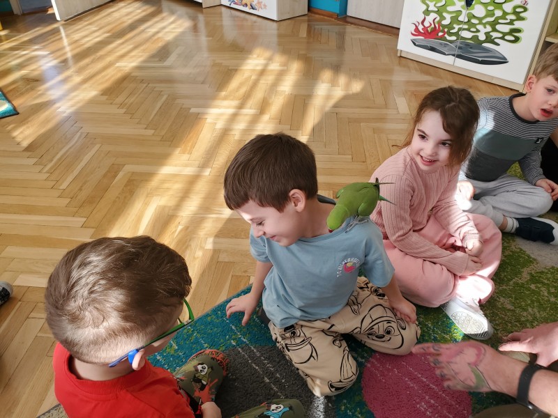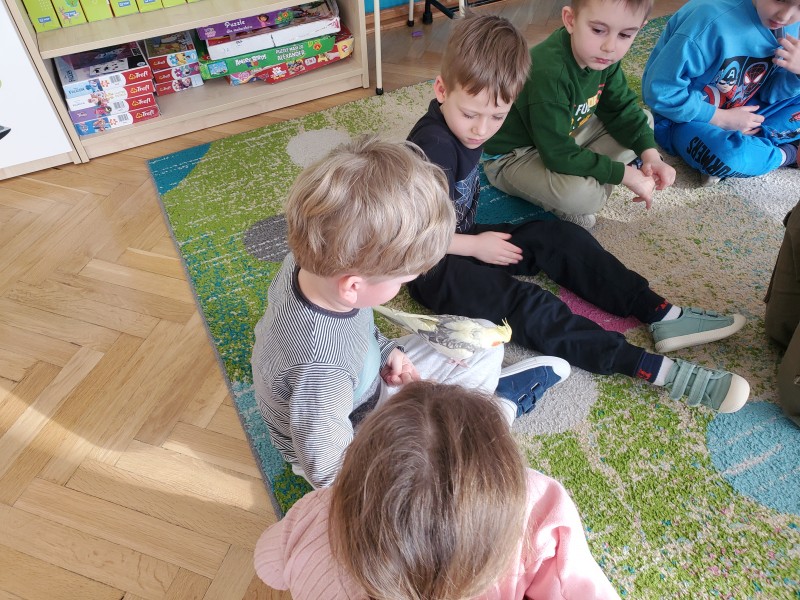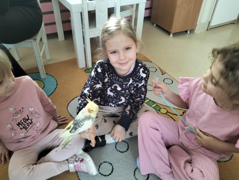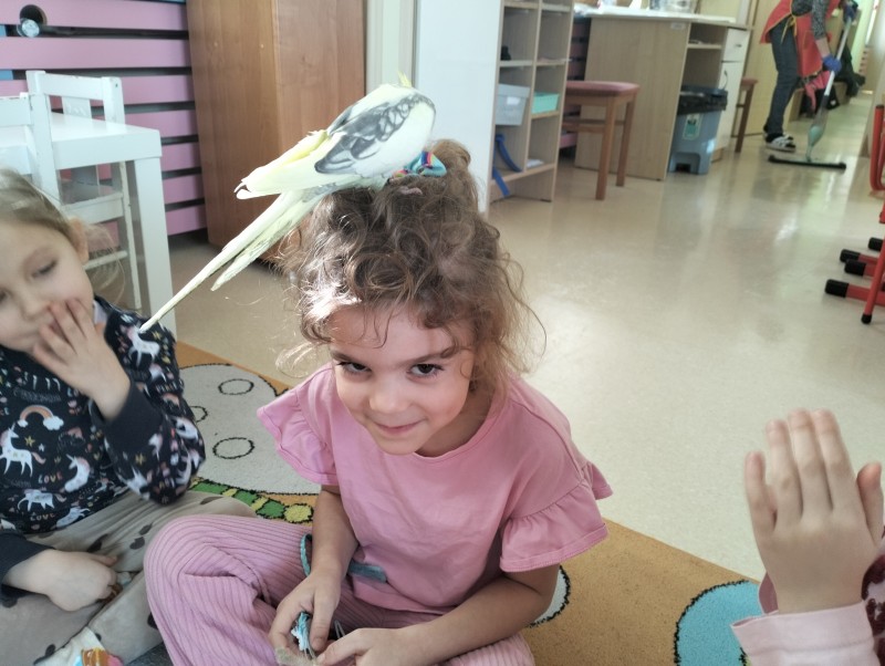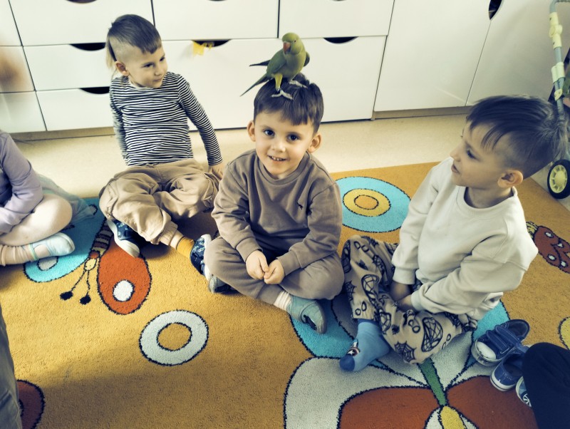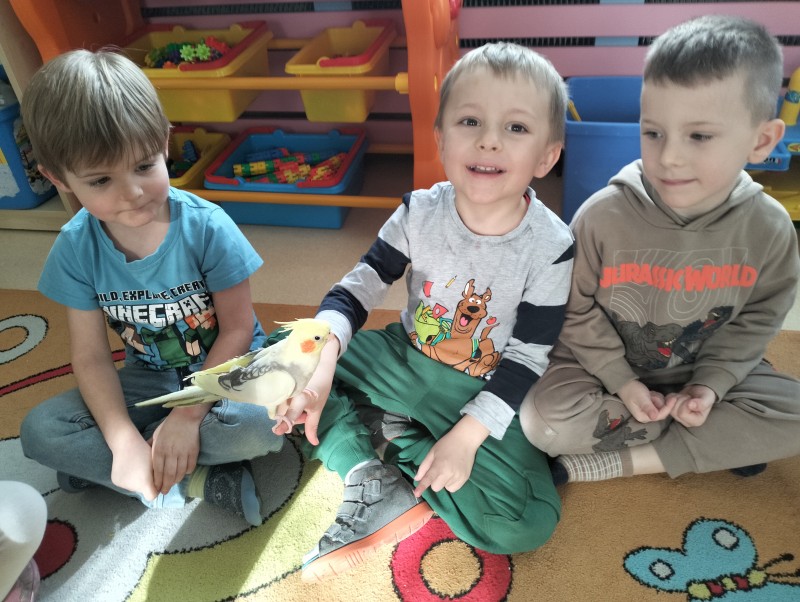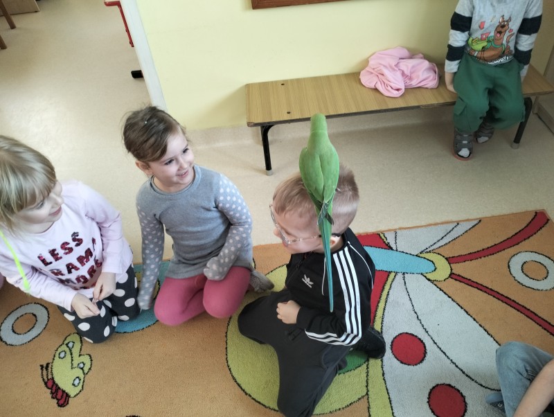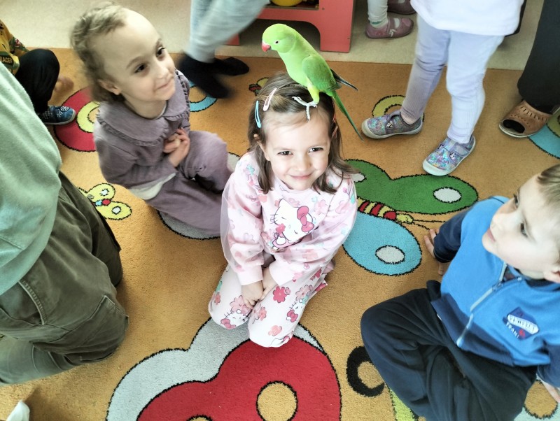 Najwięcej radości sprawił dzieciom bezpośredni kontakt z papugami. Mogły z bliska przyjrzeć się ich barwnym piórom, a nawet potrzymać niektóre z nich na rękach. Choć zdarzało się, że któraś papuga próbowała uciec, delikatnie szczypała dziobkiem lub skubała palce, dla przedszkolaków były to najbardziej emocjonujące i niezapomniane chwile.