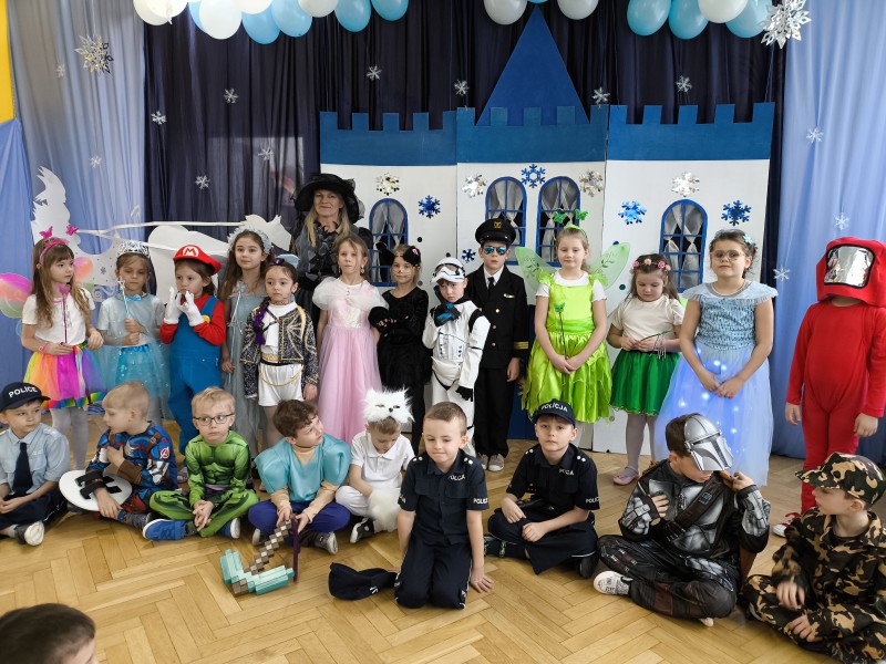 Po intensywnej zabawie przedszkolaki odpoczywały przy wspólnym poczęstunku. Na stołach gościły słodkie przekąski, owoce oraz napoje, które dodały energii do dalszej zabawy. Na zakończenie każdy mógł sobie zrobić pamiątkowe zdjęcie w swoim przebraniu. W ten sposób, karnawałowy bal stał się z pewnością niezapomnianym wydarzeniem, które na długo pozostanie w pamięci zarówno dzieci, jak i ich opiekunów.