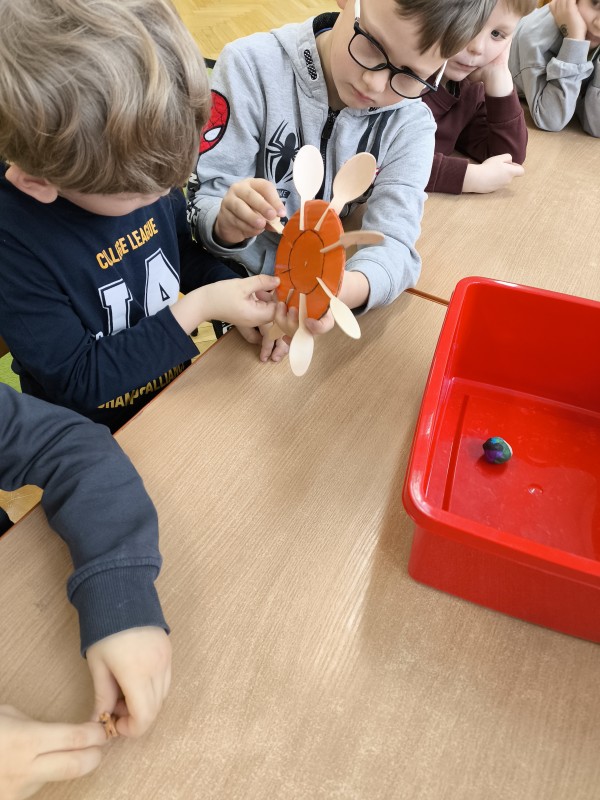 Uczestnicy programu obserwowali, na czym polega ruch prostoliniowy, brali udział w wyścigu z przeszkodami, poznawali tajemnice grawitacji. Dowiedzieli się, jak działają elektrownie wiatrowe i wodne dziś, a jak działały kiedyś. Podczas zajęć dzieci budowały i testowały rozmaite modele samolotów, spinnerów i torów kulkowych, na których obserwowały, jak poruszają się obiekty o zróżnicowanej masie i wielkości. Z pomocą nauczyciela zbudowały też i testowały model turbiny wodnej. Był to czas pełen kreatywno-technicznych odkryć i bardzo dobrej zabawy.