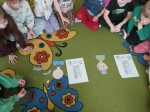 Na zajęciach z języka angielskiego dzieci opanowały już przywitanie się i pożegnanie. Starszaki potrafią powiedzieć jak się czują stosując proste sformułowanie np.: I am happy, I am sad, I am hungry, I am angry. Przypominaliśmy sobie kolory, a maluchy poznawały nazwy kolorów po angielsku. Bawiliśmy się również słownictwem związanym z aktualną porą roku - jesienią. Dzieci poznały tutaj słownictwo: squirrel, hedgehog, acorn, sunflower, apple, leaf, nut, mushroom, chestnut, pumpkin.