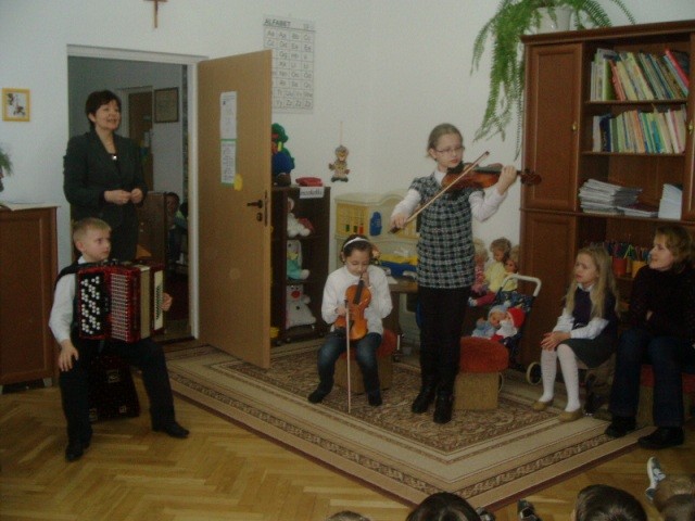 W stycznia w naszym przedszkolu odbyło się wspólne, radosne kolędowanie przedszkolaków z dziećmi uczęszczającymi do Szkoła Muzyczną I stopnia w Biłgoraju.