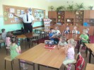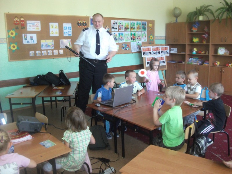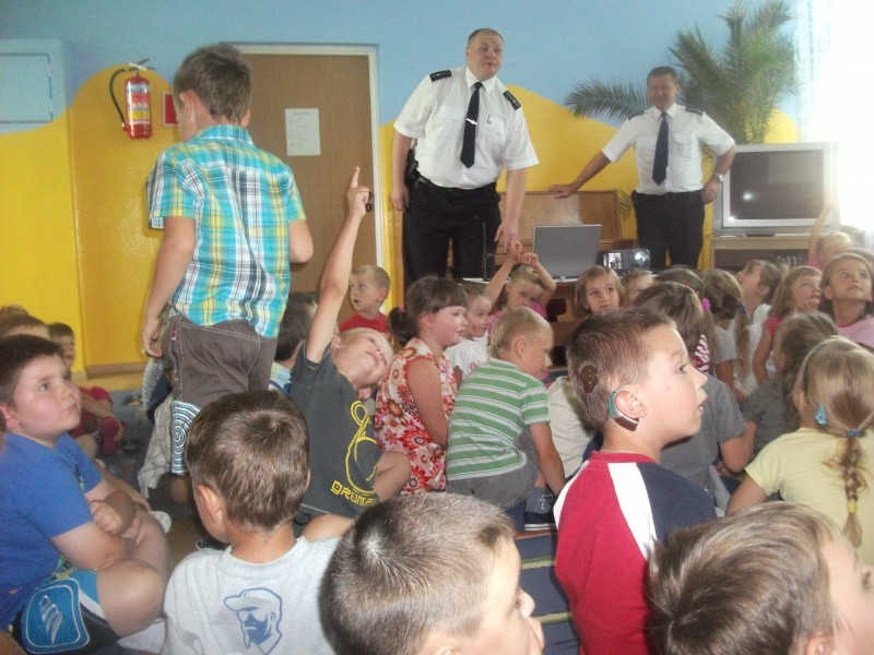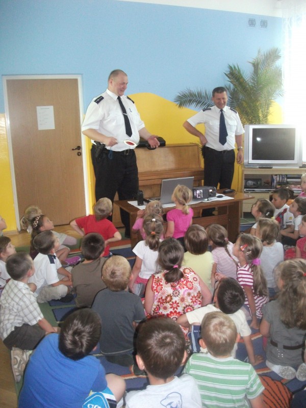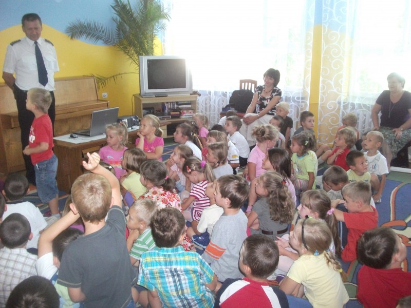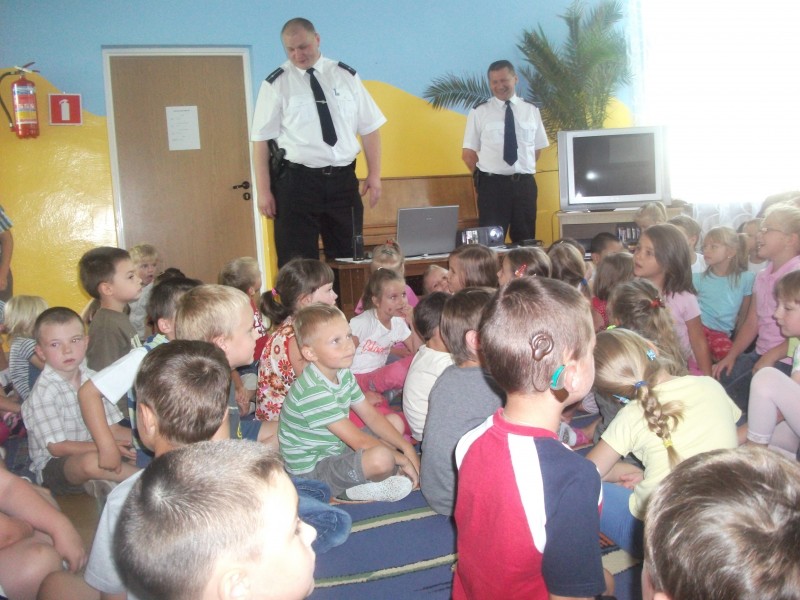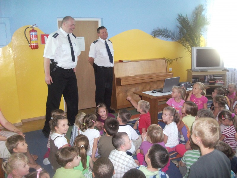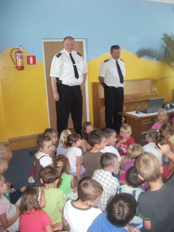 12.września 2011 r. gościliśmy w naszym Przedszkolu przedstawicieli Miejskiej Komendy Policji z Biłgoraja. Panowie policjanci wygłosili prelekcję na temat „Bezpieczna droga do przedszkola”. Głównym tematem spotkania było poznanie zawodu policjanta jak również przybliżenie dzieciom zasad bezpieczeństwa nie tylko w domu, ale przede wszystkim poza domem.