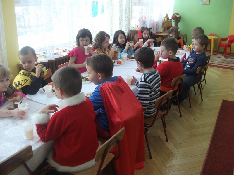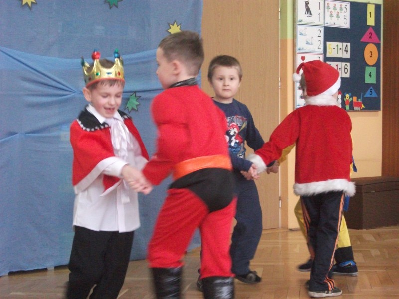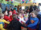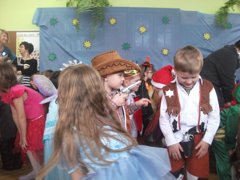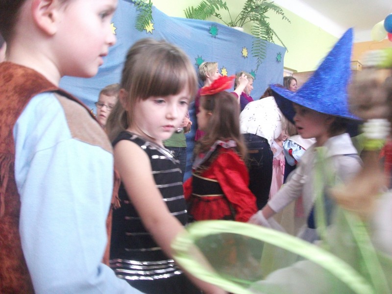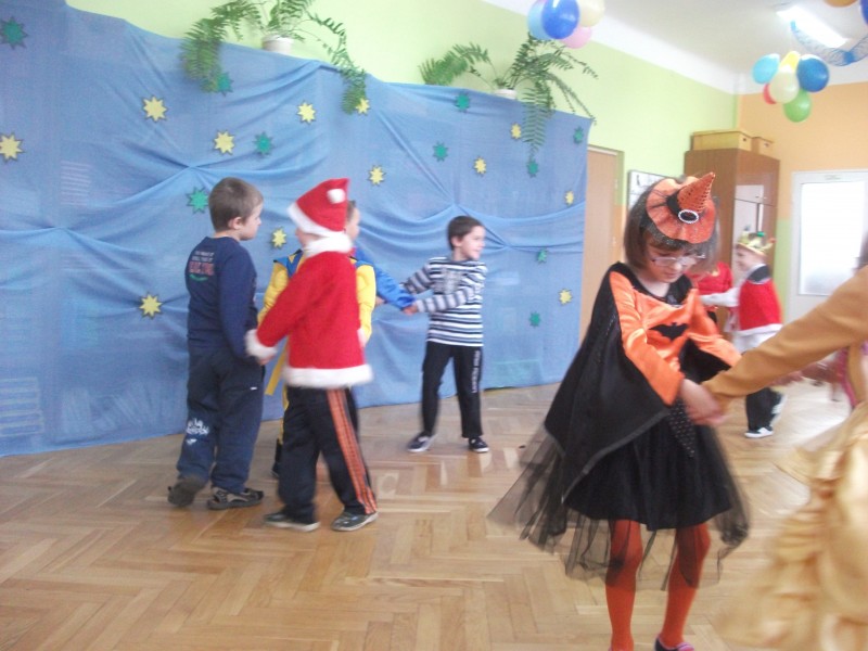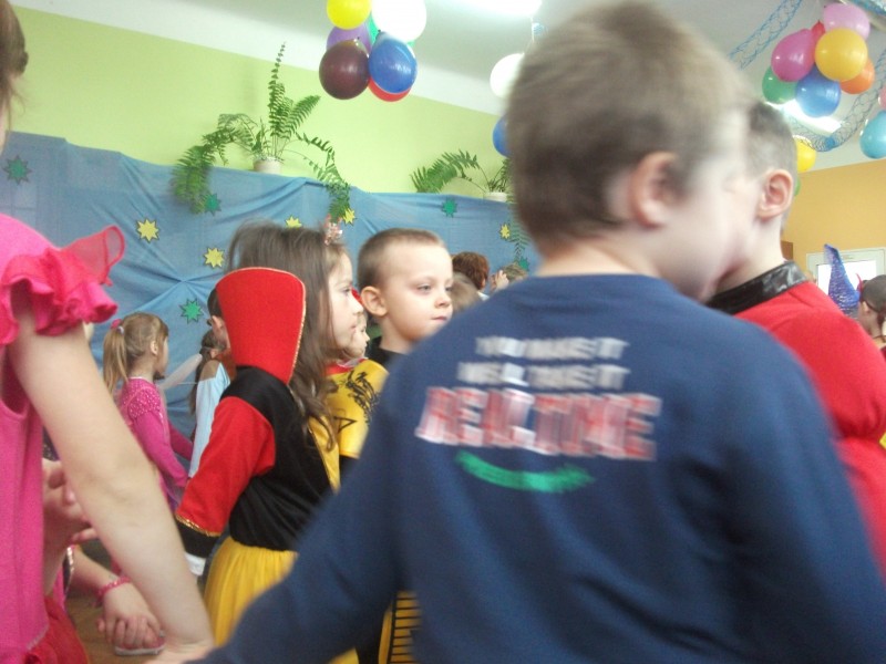 26.I. 2012 roku w godzinach 9.30 – 12.30, nasze przedszkole zamieniło się w magiczny, kolorowy świat. Gdy wybiła upragniona godzina cała sala wypełnia się dziećmi i nie tylko dziećmi z naszego przedszkola, ale także gośćmi zewnętrz: rodzice, dziadkowie. Dzieci przebrane w różnorodne, kolorowe stroje wspaniale bawiły się w rytm muzyki i śpiewu pana Wodzireja. Dziewczynki przebrane w długie powłóczyste balowe suknie księżniczek czy też dam dworu, zaś chłopcy najczęściej wybierali strój Batmana, Spidermana, Pirata i Kowboja. Podczas trwania zabawy odbyły się różne qizy i konkursy np. na najładniejszą piosenkę i wiersz. Wspólna zabawa przysporzyła wiele radości naszym pociechom, a to było głównym celem naszego balu.