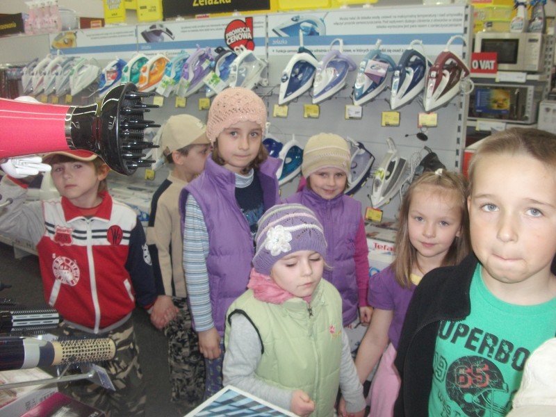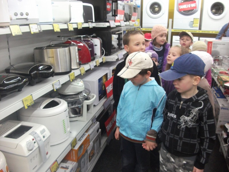 Grupa VI i VIII wybrała się na wycieczkę do sklepu AGD. Dzieci mogły w bezpośredniej obserwacji zapoznać się z wyglądem i działaniem urządzeń elektrycznych ułatwiających pracę w gospodarstwie domowym.