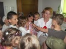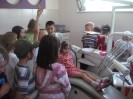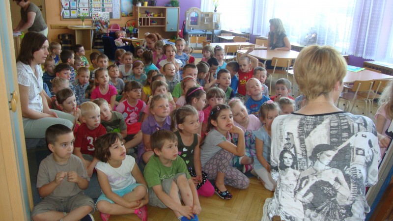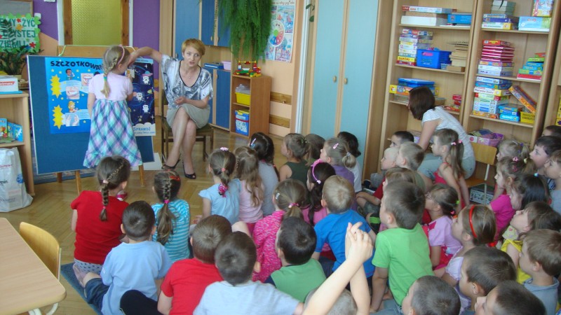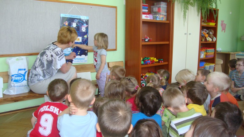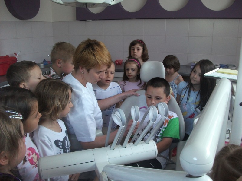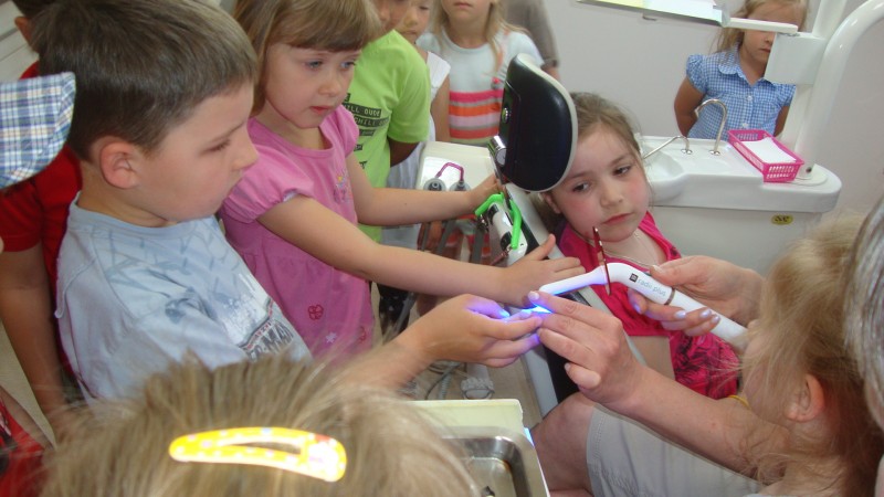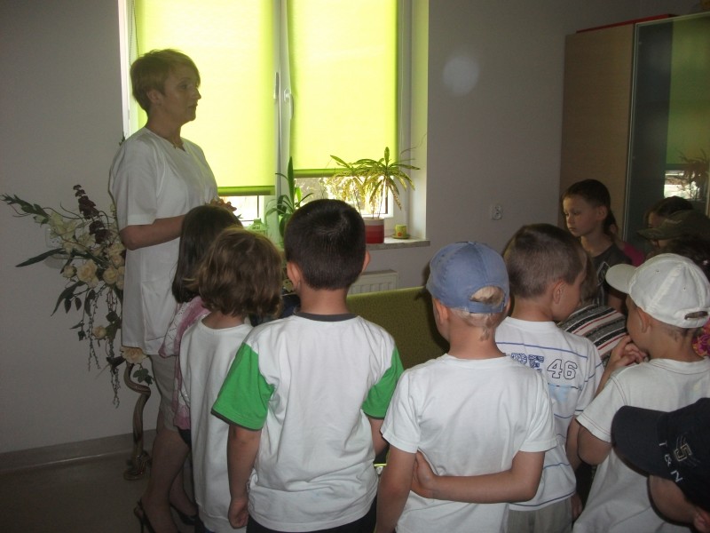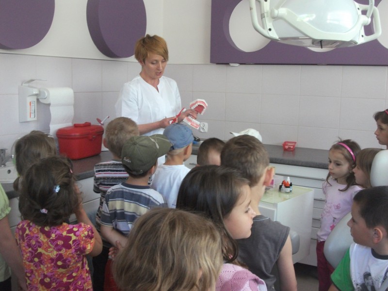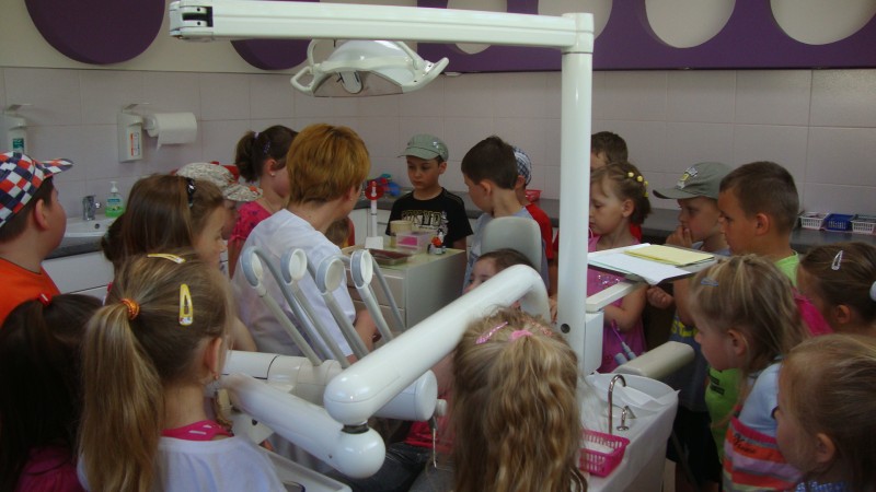 Pani doktor w ciekawy sposób opowiedziała dzieciom, co należy robić, aby mieć piękne i zdrowe zęby, pokazała dzieciom niektóre narzędzia dentystyczne oraz model szczęki na którym dokładnie zademonstrowała prawidłowy sposób mycia zębów. Dzieci były bardzo zaciekawione spotkaniem, zadawały mnóstwo pytań. W nagrodę otrzymały od pani doktor prezenty. Dzieci z grup starszych pani Ewa zaprosiła do gabinetu stomatologicznego. Wszystkie dzieci obiecały dbać o zęby i systematycznie odwiedzać gabinet stomatologiczny.
