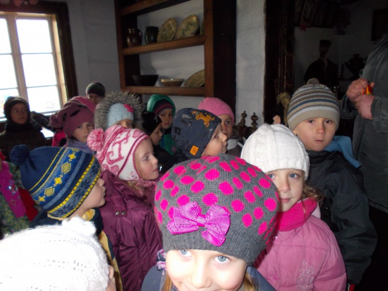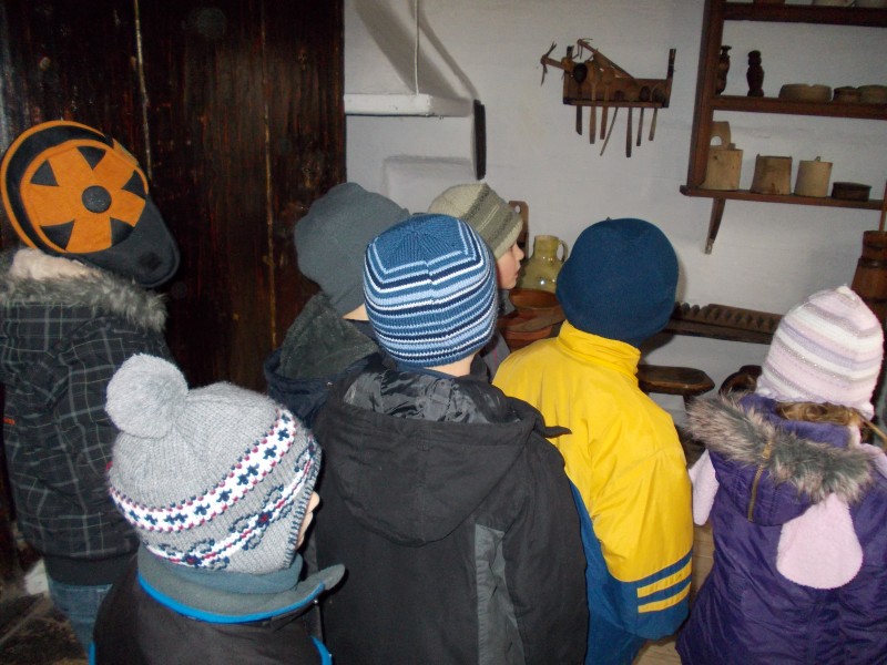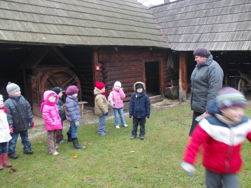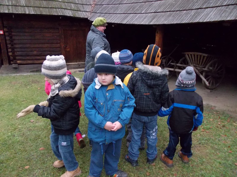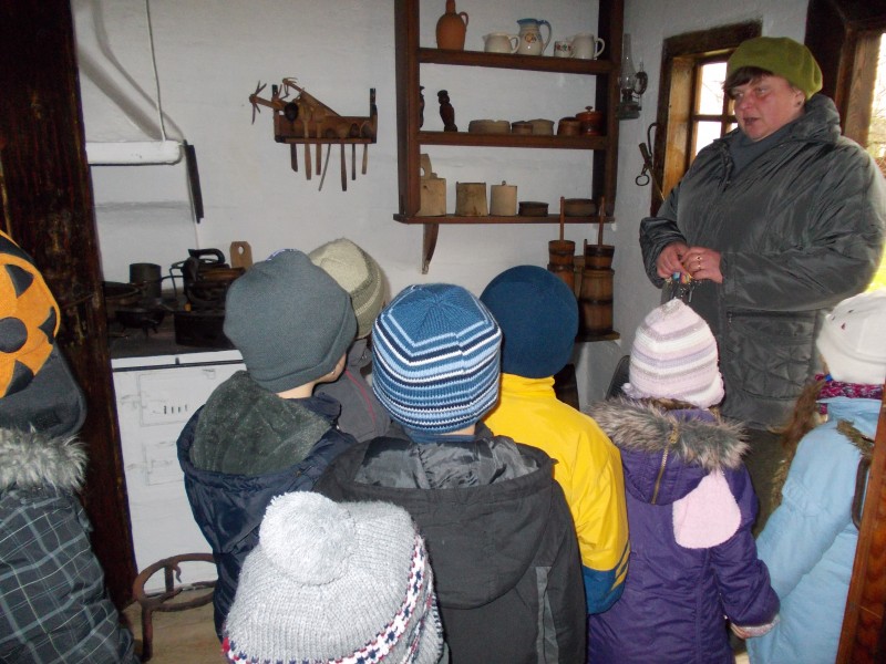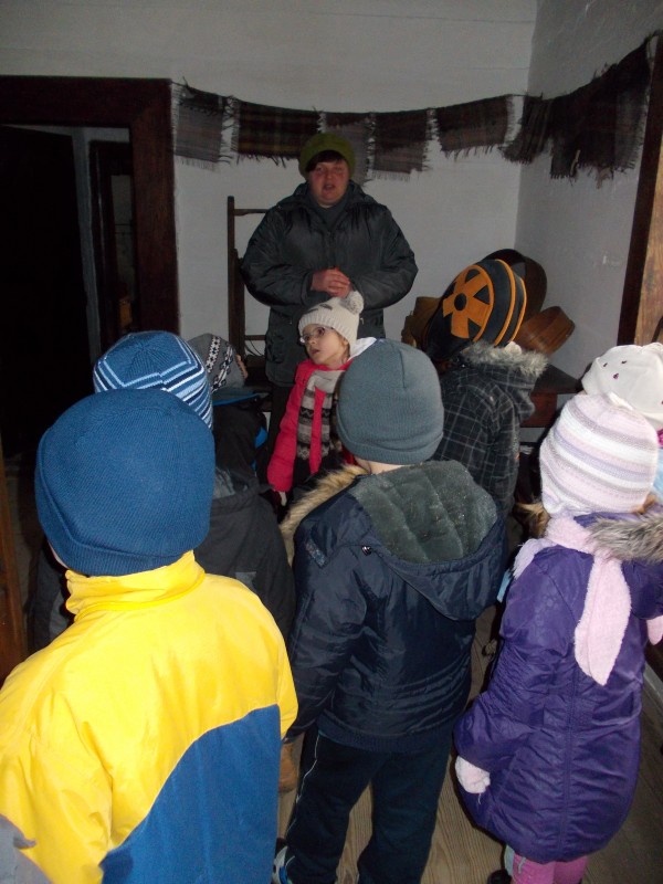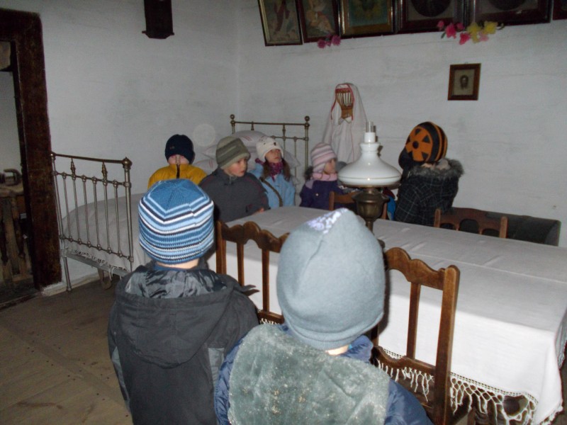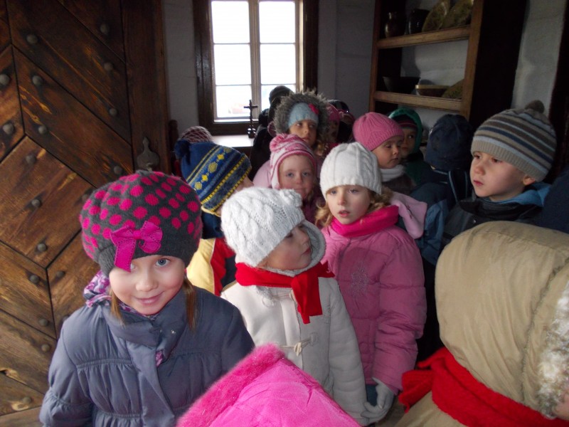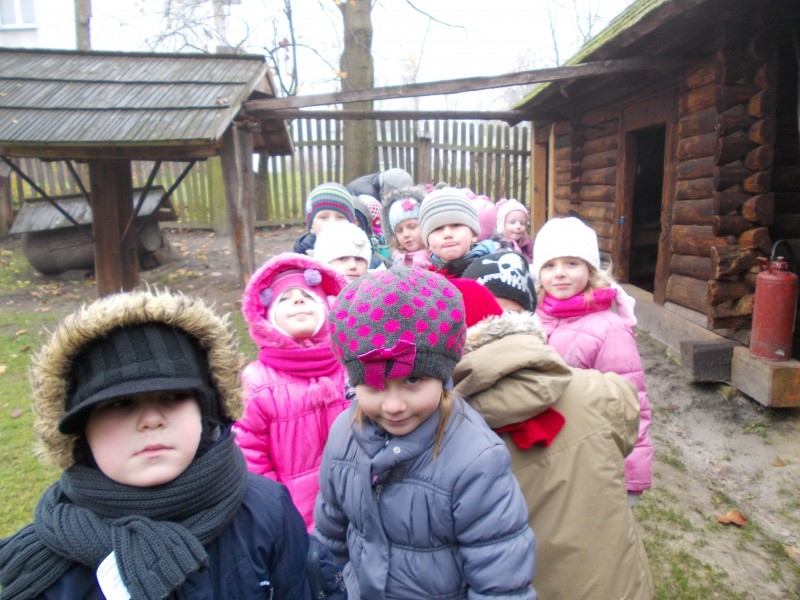 Przedszkolaki mogły z bliska obejrzeć wnętrze wiejskiej chaty, sprawdzić jak działa kołowrotek, jakiego żelazka używały ich prababcie. Spotkanie było świetna okazją do zapoznania się z historią poprzez zabawę.