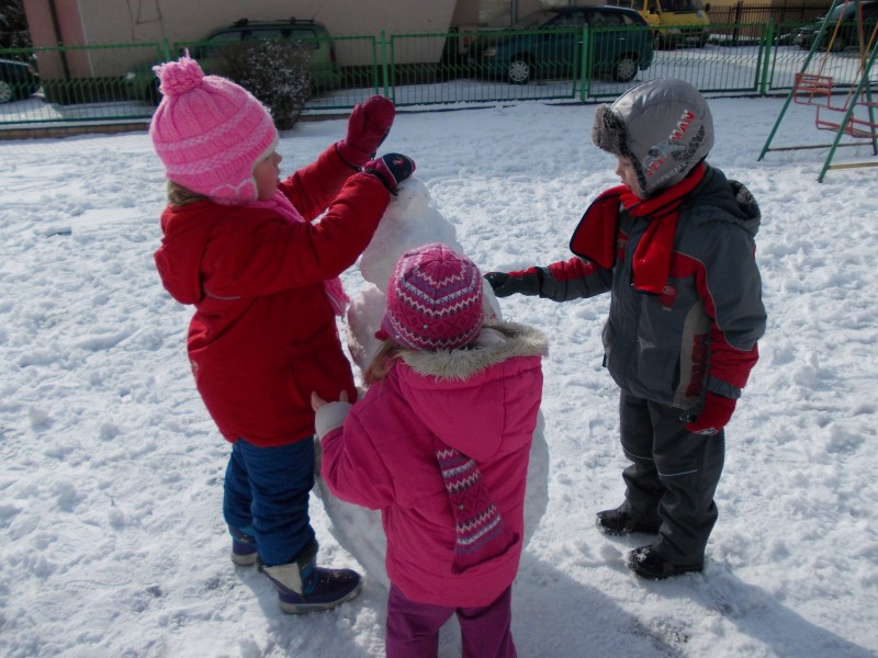 Ferie zimowe juz się skończyły . W naszym przedszkolu w zajęciach organizowanych w tym okresie uczestniczyło nieco mniej dzieci niż uczęszcza do niego na co dzień, jednak na nudę chyba nikt nie mógł narzekać. Odbywały się zabawy inne niż zwykle, było więcej czasu na słuchanie ciekawych książek czytanych przez nauczycielki, więcej okazji do zabawy z ulubionymi koleżankami i kolegami w kącikach zainteresowań, a przede wszystkim zabawa w zaśnieżonym ogrodzie przedszkolnym, wyjątkowa, gdyż dawno nie było tak dużo śniegu.