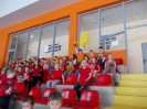 Po przywołaniu słoneczka, wysłannicy Pani Wiosny w uroczystym pochodzie przeprowadzili dzieci na halę sportowo - widowiskową, gdzie rozpoczęły się zawody sportowe. Przedszkolaki zostały podzielone na dwie grupy. W jednej znaleźli się zawodnicy, w drugiej kibice. W grupie zawodników była: grupa III z naszego przedszkola (wychowawca Marzena Sprysak),
