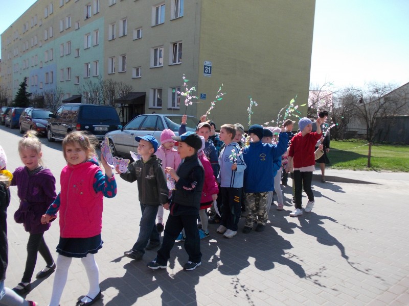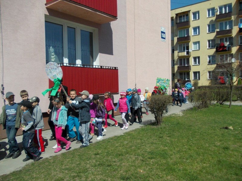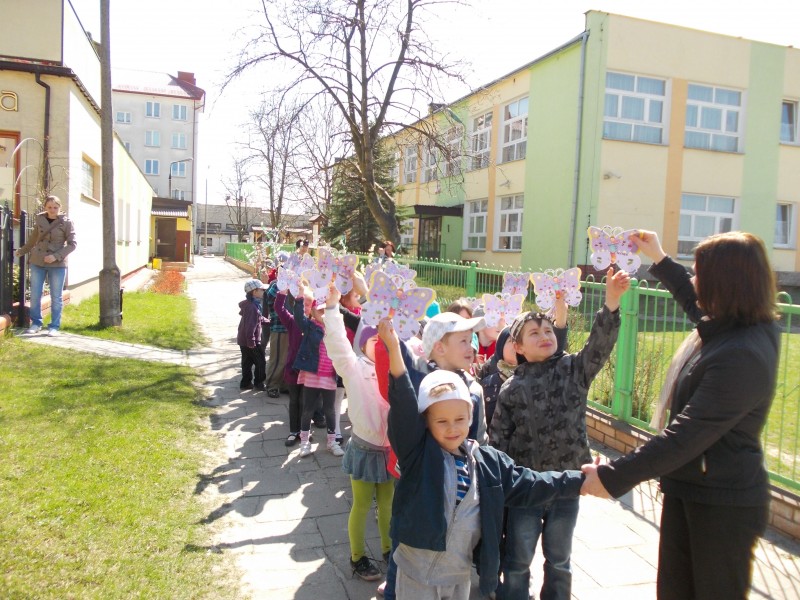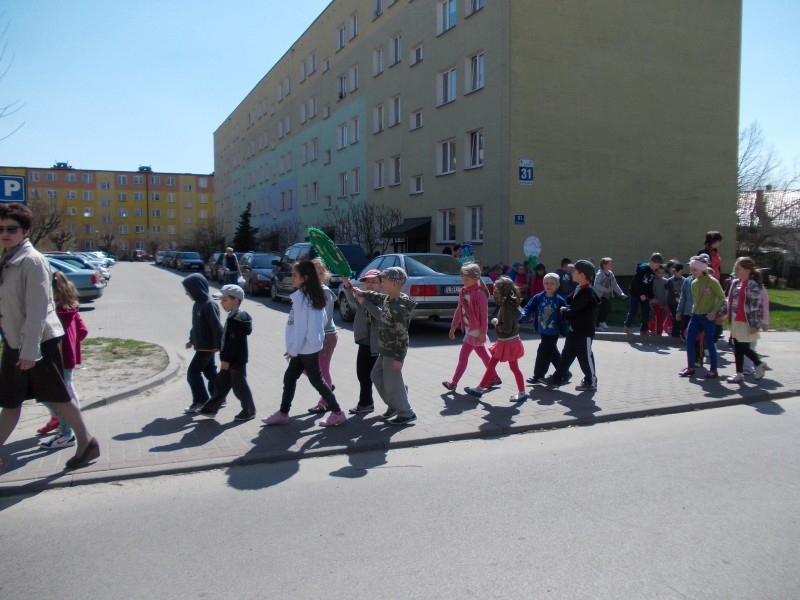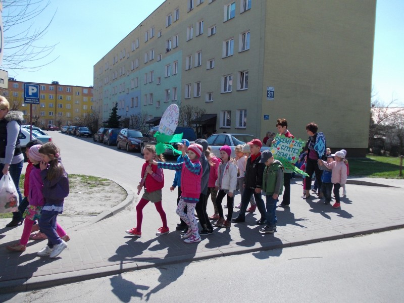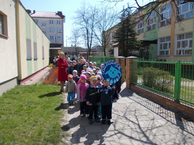 22 kwietnia w ramach obchodów Dnia Ziemi dzieci z naszego przedszkola wzięły udział w ZIELONYM MARSZU ulicami miasta. Niosąc transparenty i skandując hasła proekologiczne zachęcały mieszkańców do większej troski o naszą planetę. W trakcie marszu rozbrzmiewały piosenki o tematyce przyrodniczo -ekologicznej. Dzięki tego typu akcjom w naszych dzieciach, już od najmłodszych lat kształtowane jest poczucie odpowiedzialności za otaczającą nas przyrodę.