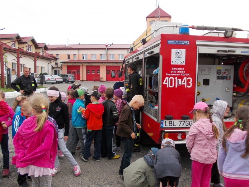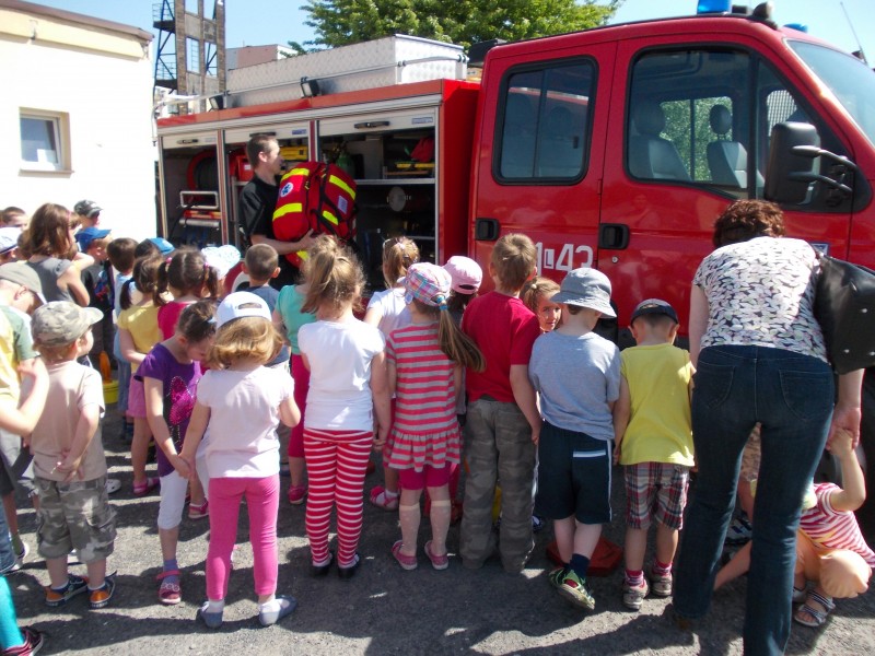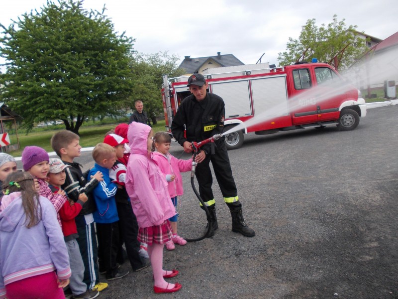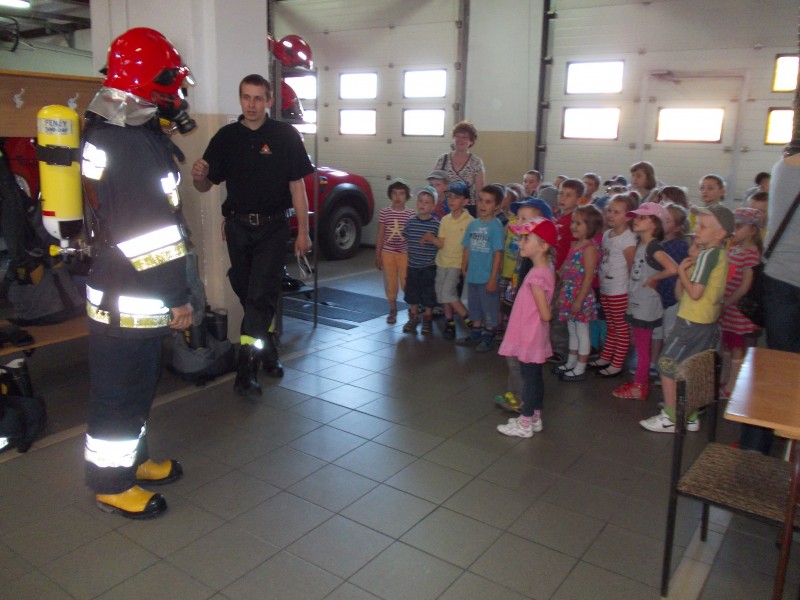 Dzieciaki dowiedziały się wielu informacji dotyczących pracy strażaka, wysłuchały którymi pojazdami strażacy wyjeżdżają do wypadków, a jakimi gaszą pożary. Dzieciaki obejrzały również wyposażenie pojazdów oraz niezbędne do pracy urządzenia. Najwięcej emocji wzbudziło chyba jednak przymierzanie strażackiego ubrania oraz lanie wody z wężów strażackich. Po takiej wycieczce wszystkie dzieciaki zgodnie przyznały, że ten zawód bardzo im się podoba, a niejedno dziecko w przyszłości chciałoby pracować w Straży.