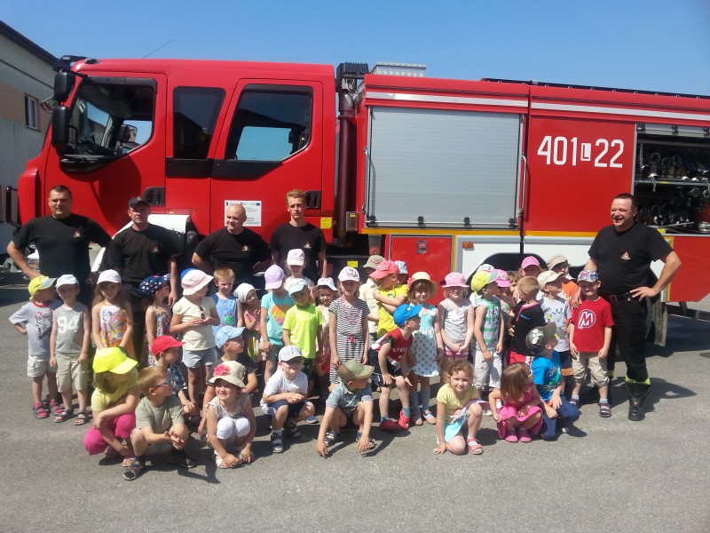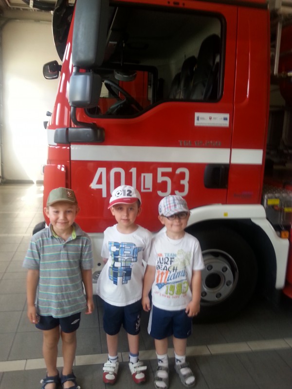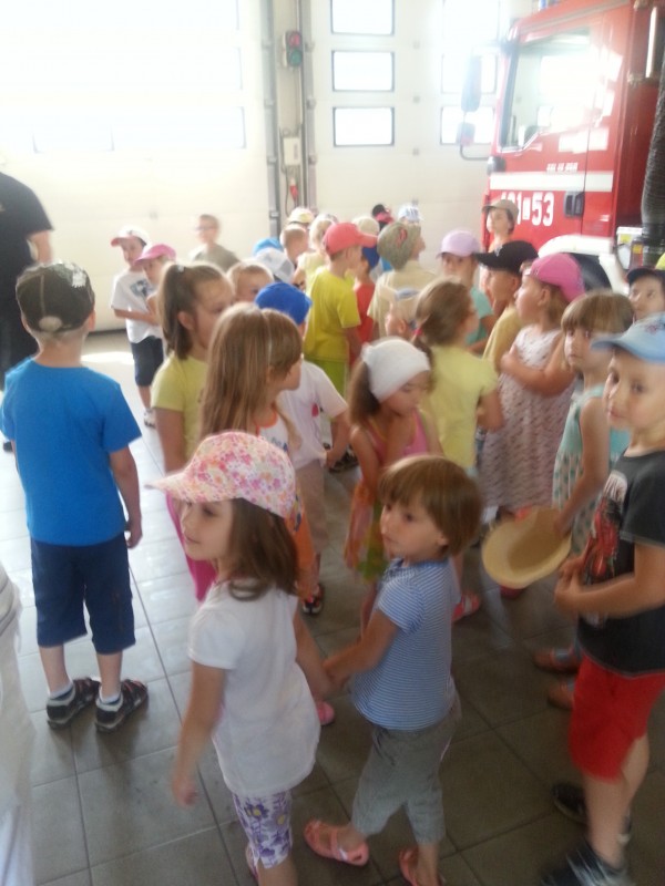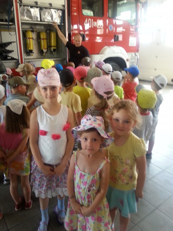 Jak co roku starsze grupy z przedszkola wybrały się na wycieczkę do Straży Pożarnej. W trakcie spotkania strażacy przybliżyli dzieciom tajniki swojej pracy zawodowej a także przekazali cenne informacje dotyczące bezpośredniego zachowania w czasie burzy, pozaru czy wypadku. Przedszkolaki miały możliwość obejrzenia z bliska wyposażenia wozów oraz niezbędnego sprzętu i urządzeń, którymi posługują się strażacy. Spotkanie uświadomiło dzieciom jak trudna i odpowiedzialna jest ich praca. Z wycieczki przedszkolaki powróciły pełne niezapomnianych wrażeń a wielu chłopców deklarowało pozostać w przyszłości strażakiem. Komendzie Powiatowej Państwowej Straży Pożarnej w Biłgoraju dziękujemy za ciekawą i niezapomnianą wycieczkę.