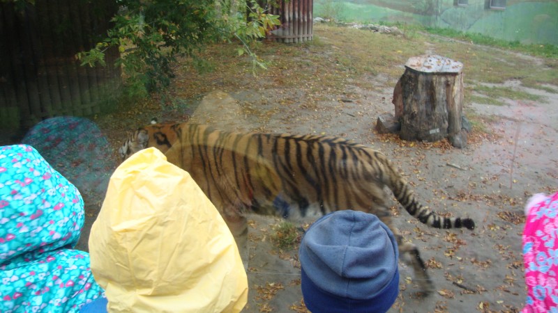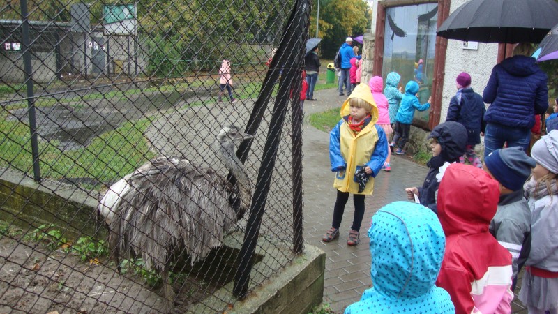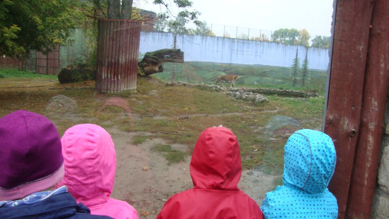 Wycieczka do zamojskiego ZOO była kolejną ciekawą przygodą, jaką przeżyły starszaki z naszego przedszkola. Celem wycieczki była obserwacja i czerpanie pozytywnych wrażeń w kontakcie z przyrodą, zainteresowanie różnorodnością gatunków świata zwierząt oraz kształtowanie świadomości ekologicznej i poczucia odpowiedzialności za jakość współistnienia z przyrodą. Wycieczka przedszkolaków do ZOO była też okazją do utrwalania reguł kulturalnego zachowania się w miejscach użyteczności publicznej. Aura, choć do tej pory słoneczna, tym razem okazała się kapryśna. Nie mniej jednak przedszkolaki zobaczyły wiele wspaniałych i ciekawych zwierząt.