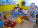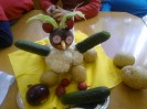 Jesień to pora roku, która nas zachęca do wykorzystywania swoich darów, pobudza wyobraźnię i pozwala tworzyć artystyczne dzieła. Dlatego też w naszym przedszkolu od kilku lat organiazowana jest wystawa różnych postaci z warzyw. Do wyczarowania "jesiennych cudaczków" wykorzystywane były dynie, ziemniaki, ogórki, marchew i wiele innych. W ten sposób powstały wspaniałe warzywne arcydzieła, wśród których znalazły się: zwierzaki, stworki, potworki i wiele innych ciekawych postaci. Wszystkie zebrane prace prezentowane były na holu naszego przedszkola. Wystawa cieszyła się dużym zainteresowaniem dzieci i rodziców, gdyż ujawniła wspaniałe talenty naszych przedszkolaków.