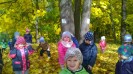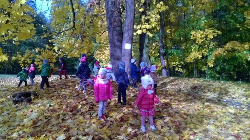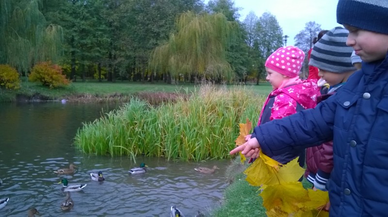 W tym roku jesień nas nie rozpieszcza. Korzystając więc ze słonecznego i dosyć ciepłego przedpołudnia dzieci z grupy III wybrały się na spacer do parku. Podczas wycieczki przedszkolaki obserwowały nie tylko piękno jesiennego krajobrazu ale również zmiany zachodzące w przyrodzie o tej porze roku. Dzieci spacerowały po parku, obserwowały przyrodę, słuchały jej odgłosów. Przyglądały się drzewom, poznawały ich liście i owoce. Był też czas na bieganie i zabawy. Najwięcej radości sprawiło baraszkowanie wśród miękkich, pachnących liści oraz karmienie kaczek. To był bardzo udany spacer.