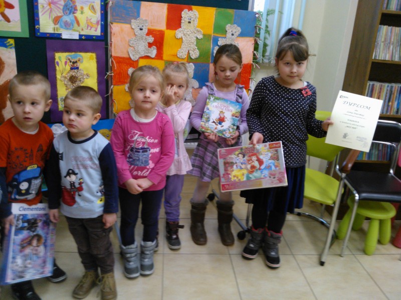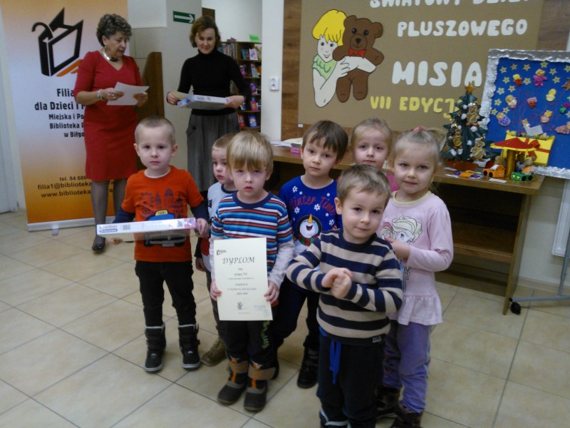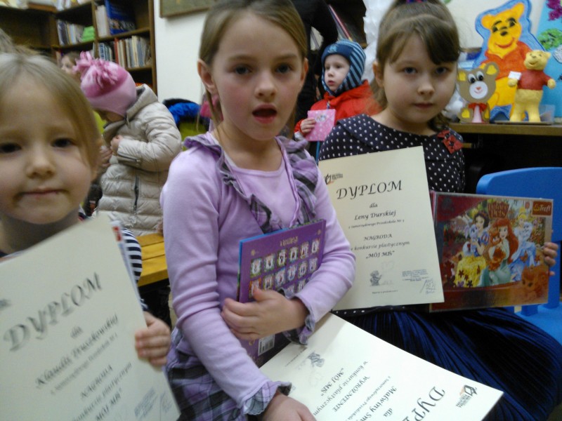 W konkursie plastycznym „Mój miś” nagrody indywidualne otrzymały Malwinka Smyl i Lenka Durska z grupy V oraz Klaudia Truszkowska z Grupy VII. Nagrodę za pracę grupową otrzymała grupa VII. Wszystkie pozostałe dzieci, które namalowały prace do konkursu otrzymały pamiątkowe dyplomy.