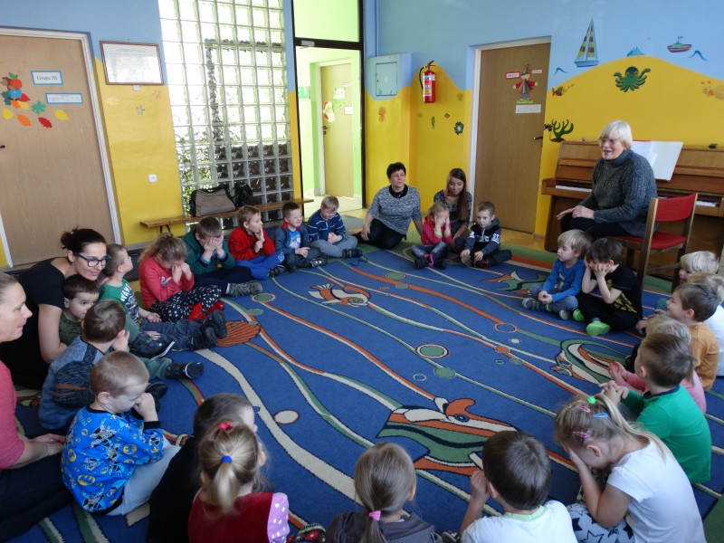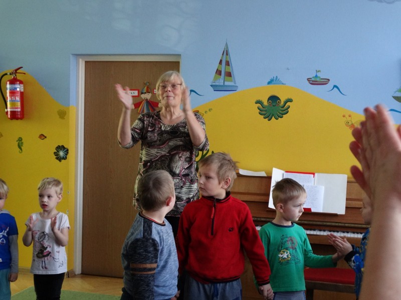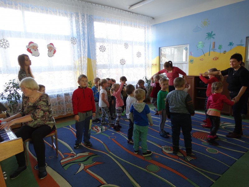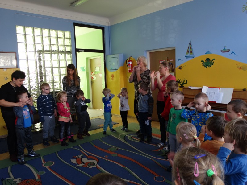 W ramach integracji pomiędzy placówkami, na zajęciach z rytmiki grupa VII gościła przedszkolaków z pobliskiego przedszkola specjalnego. Dzieci wspólnie wesoło się bawiły.