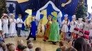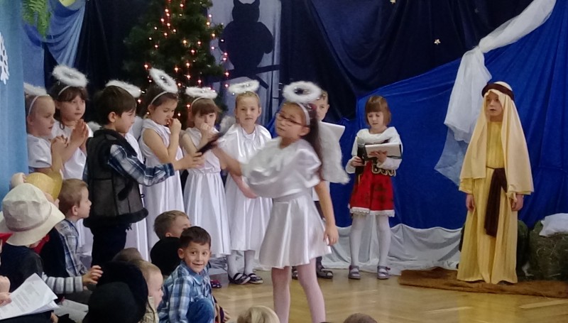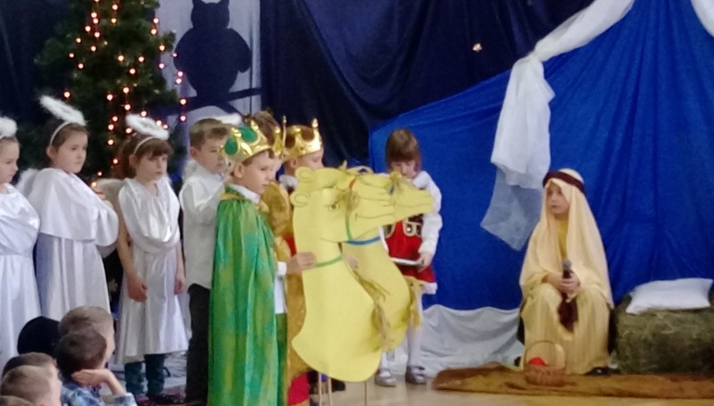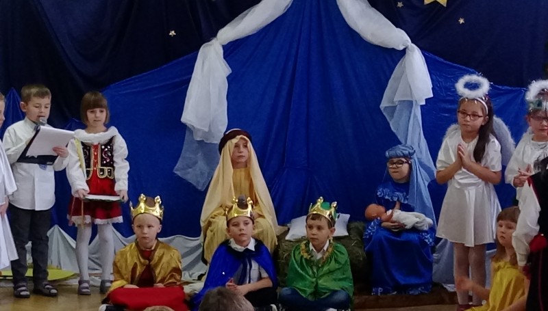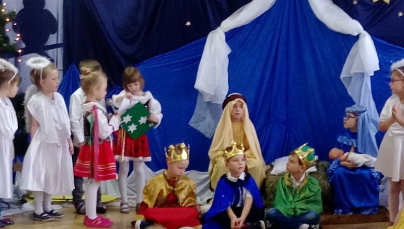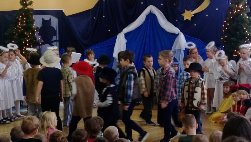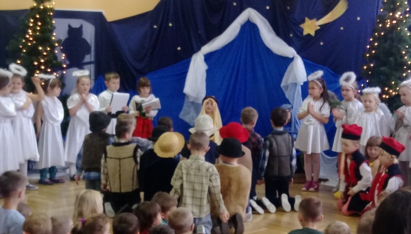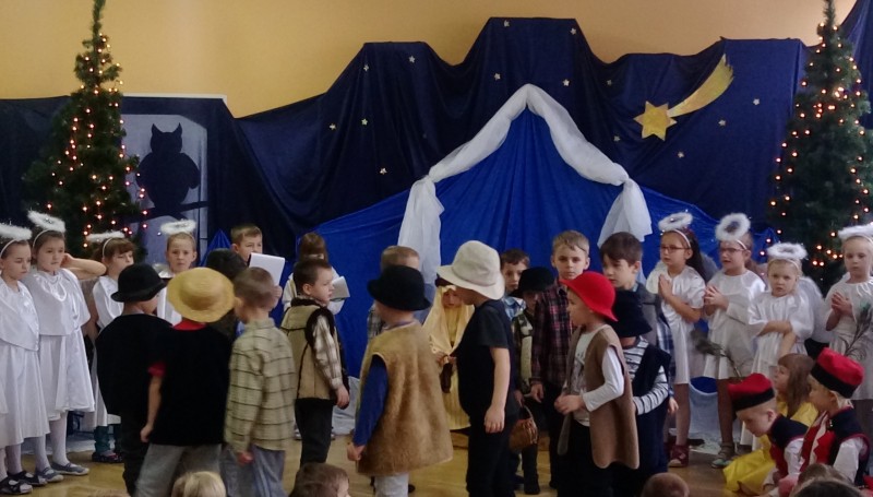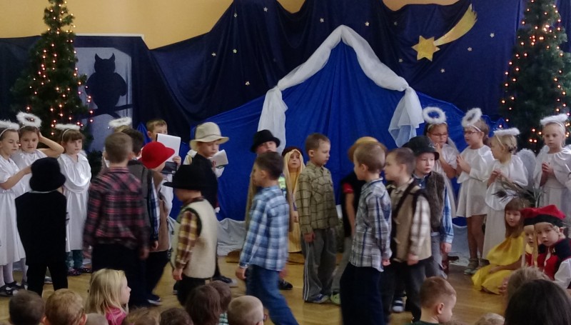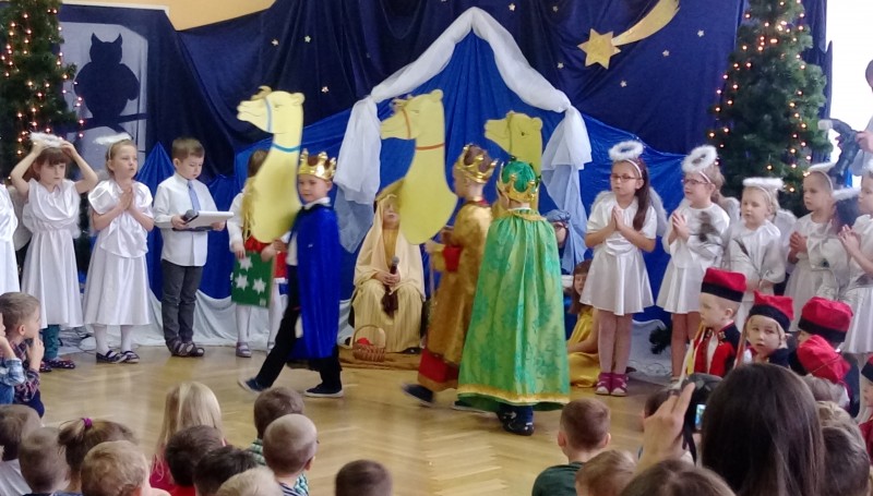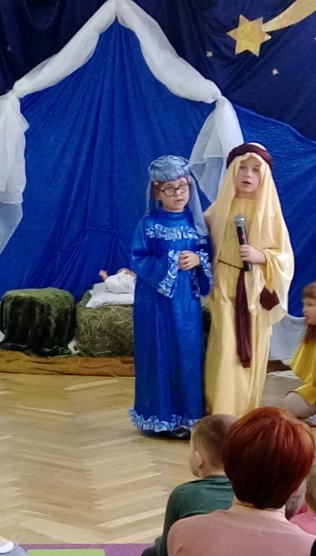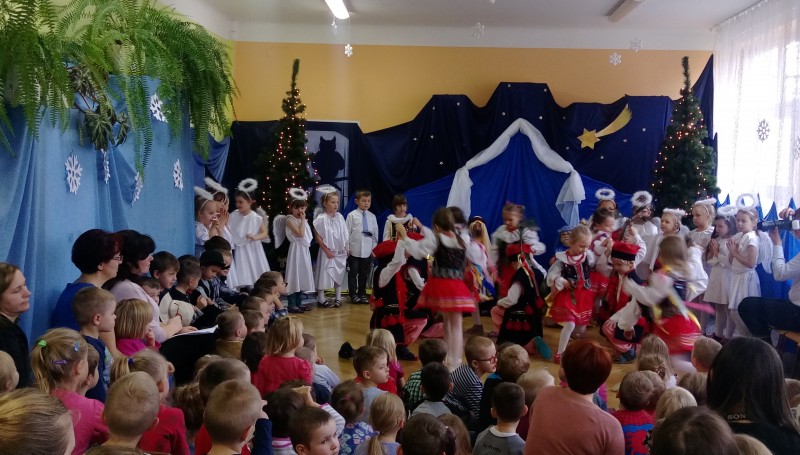 Uroczystość Jasełek od wielu lat wpisana jest do kalendarza uroczystości organizowanych w naszym przedszkolu. W tym roku również dzieci znajstarszych grup przedstawiły Jasełka dla wszystkich przedszkolaków, rodziców i zaproszonych gości. Głównym celem tej uroczystości było wprowadzenie uczestników w radosną atmosferę Świąt Bożego Narodzenia, kształcenie umiejętności wyrażania uczuć i przeżyć podczas inscenizacji Jasełek, wzmacnianie więzi emocjonalnej z rodziną, rozwijanie indywidualnych predyspozycji i uzdolnień aktorskich dzieci oraz nabywanie odwagi, śmiałości podczas występów przed publicznością. Przedstawienia były wyjątkowe, a mali aktorzy spisali się znakomicie.