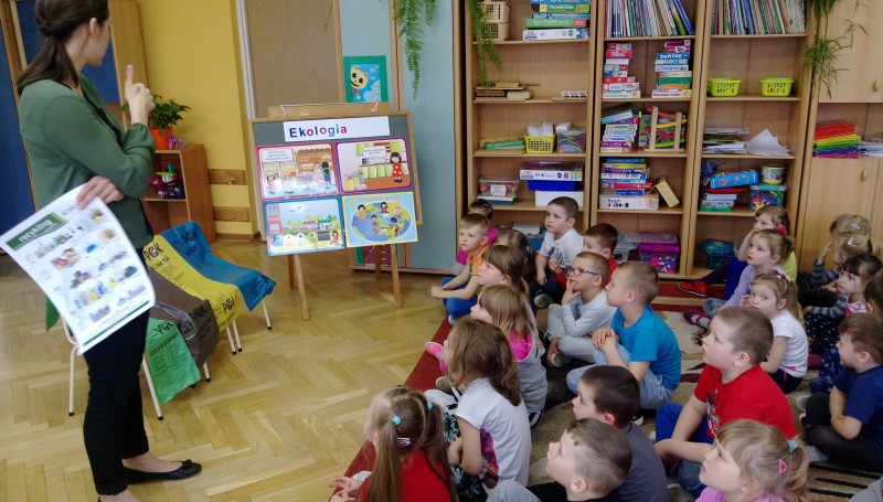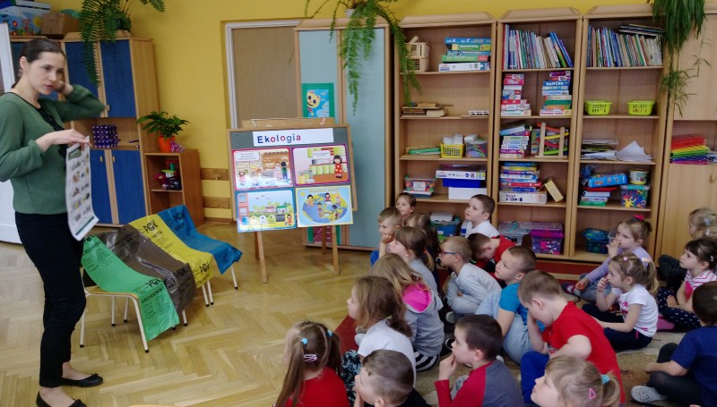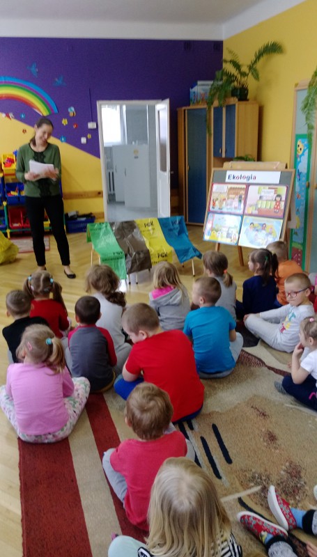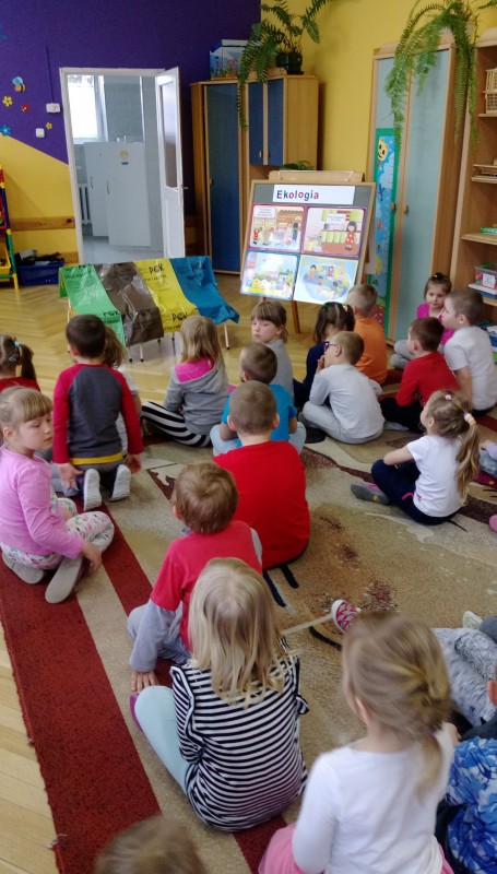Dzisiaj w naszym przedszkolu gościła pani ekolog, która przeprowadziła pogadankę na temat ochrony środowiska, segregacji śmieci i szkodliwości odpadów. Organizowanie takich spotkań daje dzieciom okazję do rozwijania swoich zainteresowań. Pogłębiają one w ten sposób swoją świadomość ekologiczną, uczą się szacunku do zwierząt i do otaczającego je środowiska przyrodniczego.