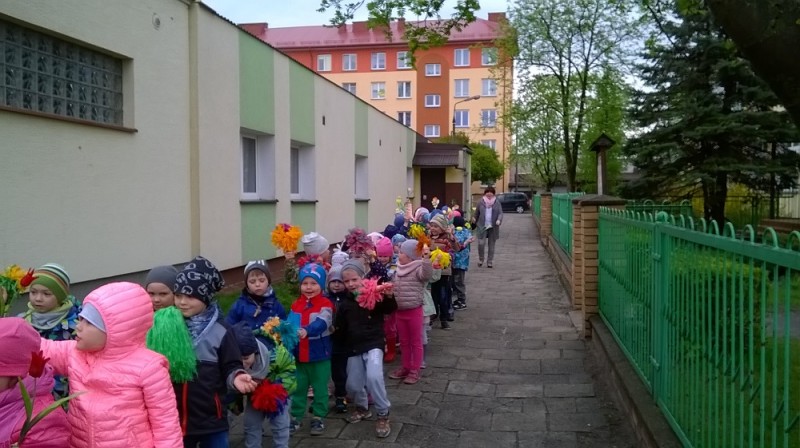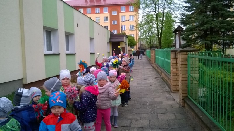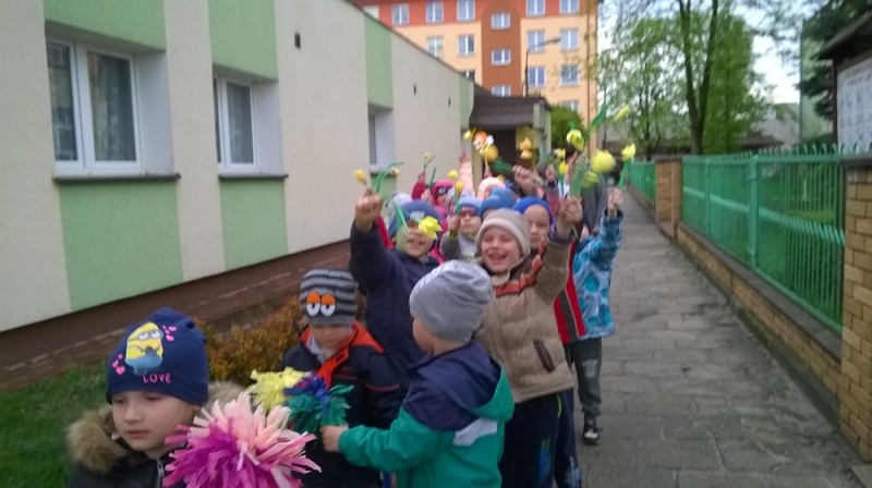 W tym roku przedszkolaki z hasłami nawiązującymi do ochrony Ziemi i jej zasobów oraz z kolorowymi kwiatami i transparentami przemaszerowały ulicami najbliższego osiedla.