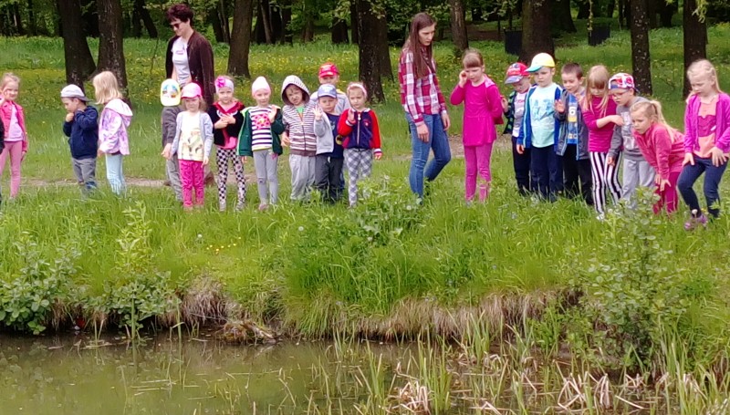 W piękny majowy dzień grupa III i IV wybrały się na wycieczkę na pobliską łąkę i staw . Wyprawa miała na celu kształtowanie umiejętności obserwacji roślin i zwierząt, rozbudzanie zainteresowań przyrodą jak również budzenie wrażliwości na jej piękno.