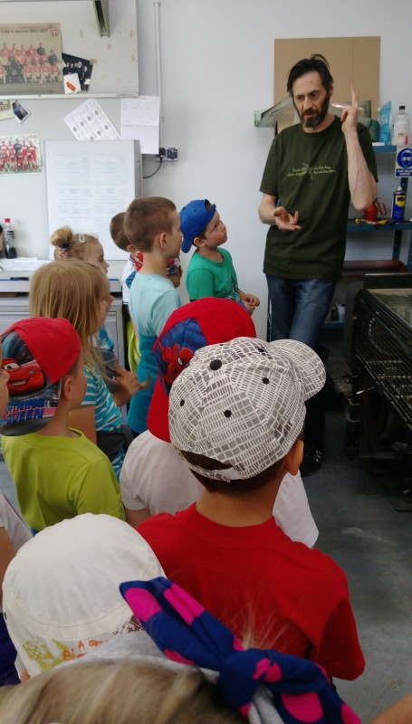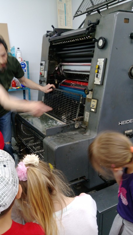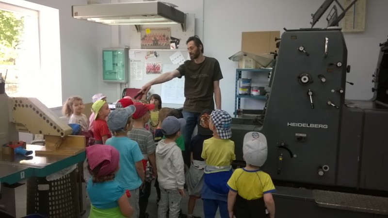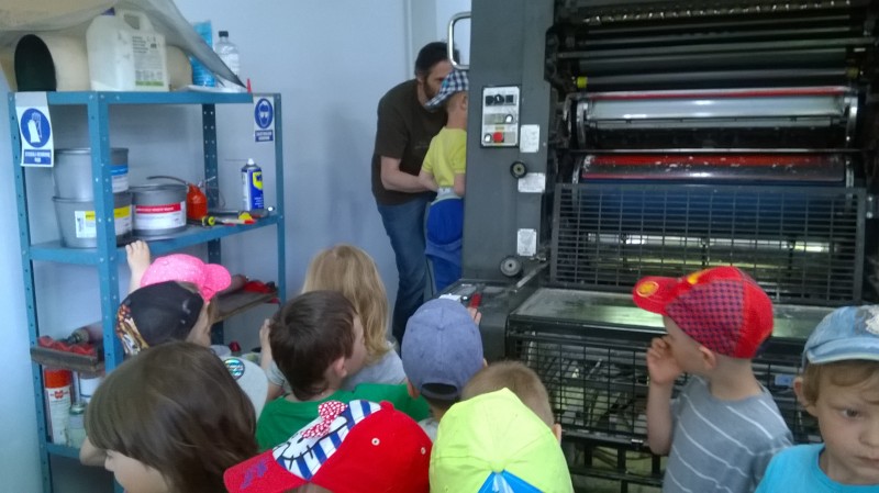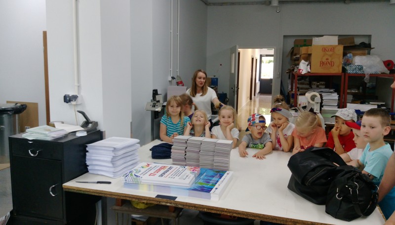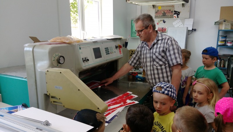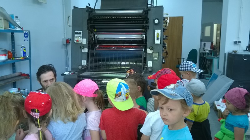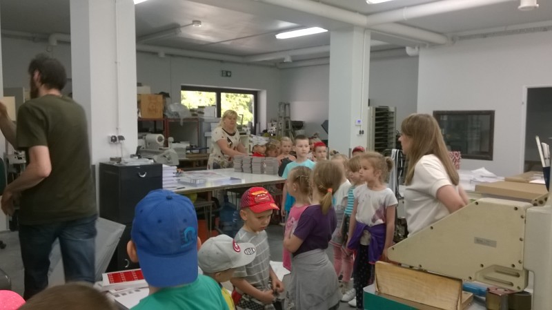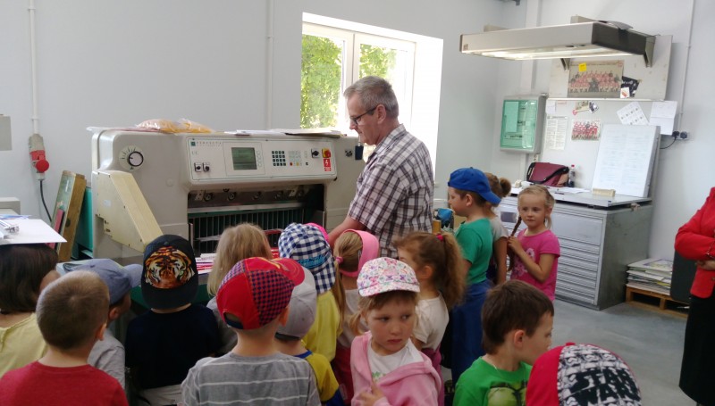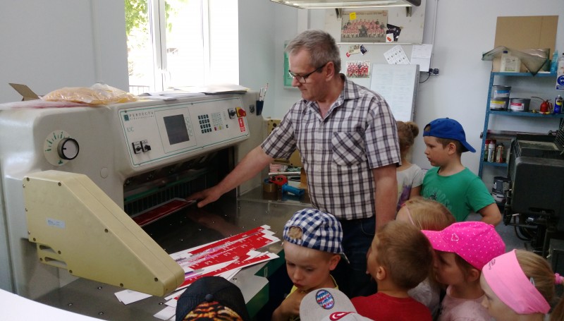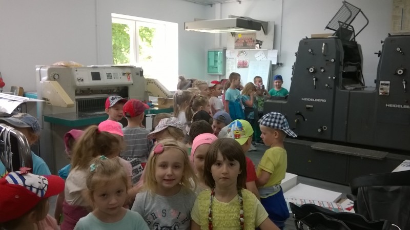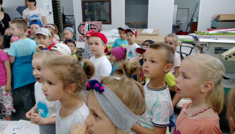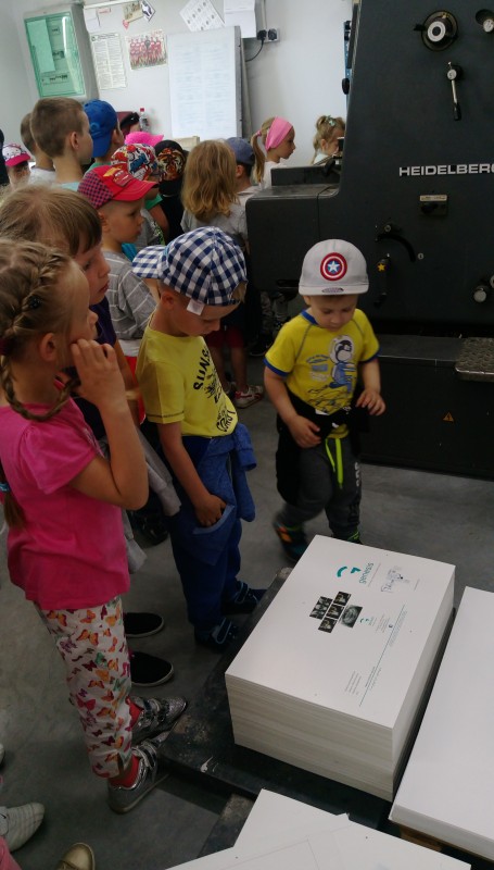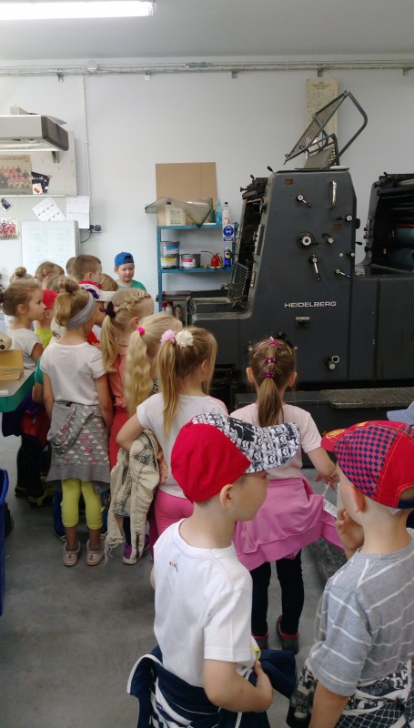 W poniedziałek 23 maja przedszkolaki z grupy III i IV udały się na wycieczkę do drukarni Helvetica. Celem wycieczki było zapoznanie dzieci z etapami procesu drukowania. Dzieci zwiedziły pomieszczenia drukarni, obejrzały maszyny wykorzystywane do drukowania i przycinania min.. reklam, książek, ulotek informacyjnych, itp. Na koniec każde dziecko poczęstowało się pysznym cukierkiem.