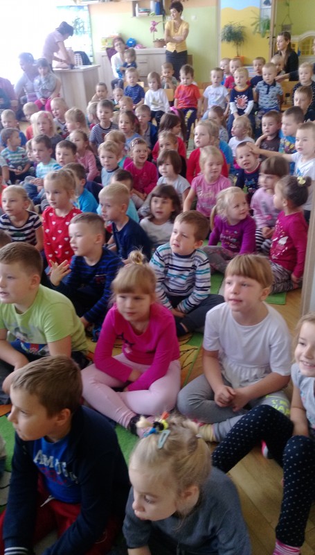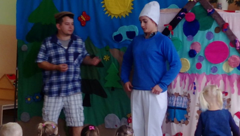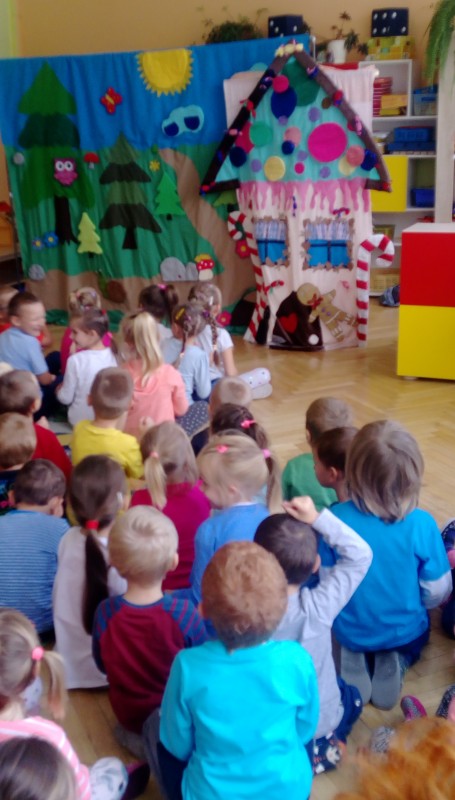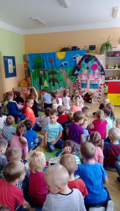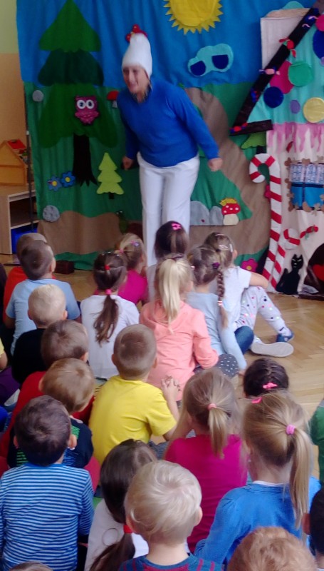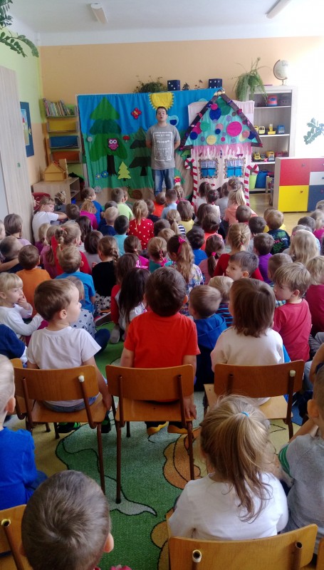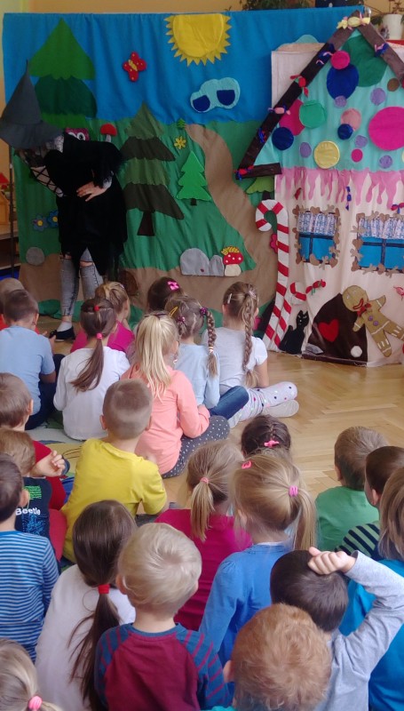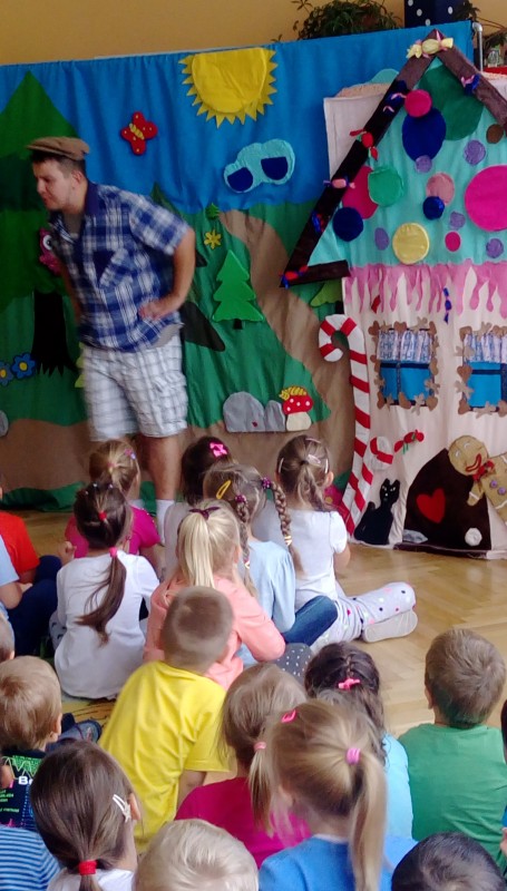 W każdym miesiącu gościmy w naszym przedszkolu teatrzyk objazdowy. Podczas takiego przedstawienia dziecko jest widzem i obserwatorem, aktywnie uczestniczy w różnego typu inscenizacjach i koncertach przygotowanych przez profesjonalistów, poznaje zasady panujące w teatrze, często samo wciela się w rolę aktora, rozwija wyobraźnię i wrażliwość estetyczną, otrzymuje wzorce artystyczne i poszerza wiadomości o teatrze.