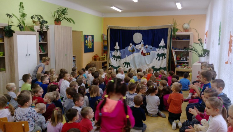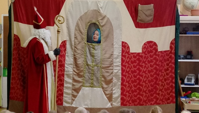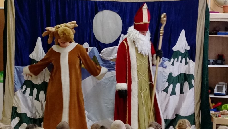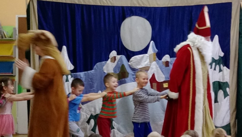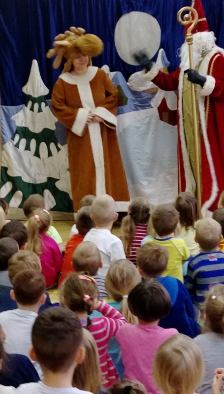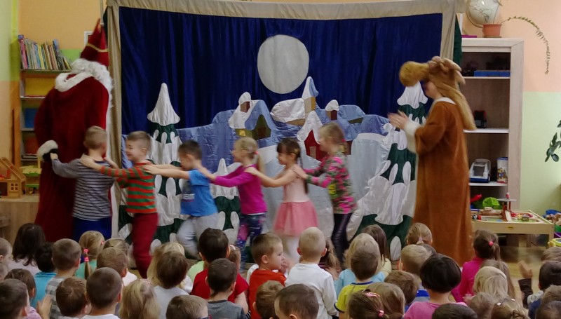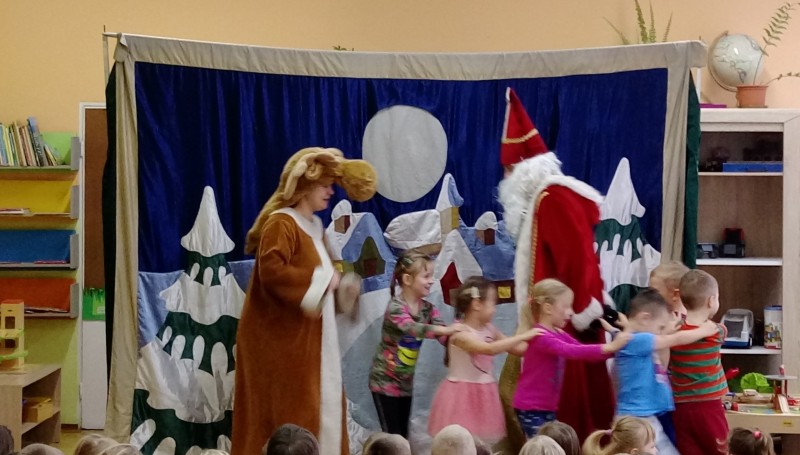 W ostatnim dniu tygodnia gościliśmy w naszym przedszkolu aktorów z przedstawieniem pt. ”Legenda o Świętym Mikołaju”. Głównym celem teatrzyku było przybliżenie dzieciom postaci Św. Mikołaja, jego życia i czynów. Był to spektakl składający się z kilku łączących się ze sobą epizodów inspirowanych historią Mikołaja, podczas których dzieci poznały historię prawdziwego biskupa Mikołaja oraz jego następców z różnych stron świata m.in. Włoch i Chorwacji. Dzieci w miłej i wesołej atmosferze mogły z Mikołajem zaśpiewać i zatańczyć, dobrze się przy tym bawiąc.