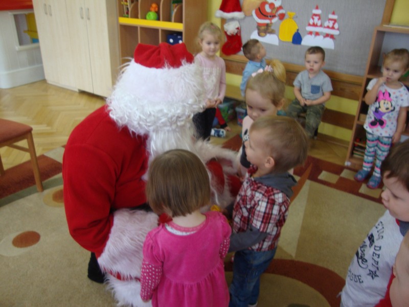 W tym roku Święty Mikołaj zawitał do naszego przedszkola już 5 grudnia. Dzieci wyczekiwały jego przyjścia od samego ranka. Kiedy za drzwiami rozległ się głos mikołajowego dzwonka, emocje ścięgnęły zenitu. Grzeczne przedszkolaki przygotowały dla swojego gościa piosenki, wiersze a nawet krótkie zabawy. W zamian Święty Mikołaj obdarował wszystkich prezentami i pozował do wspólnych zdjęć.