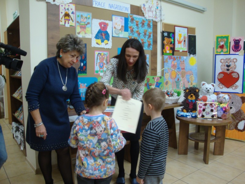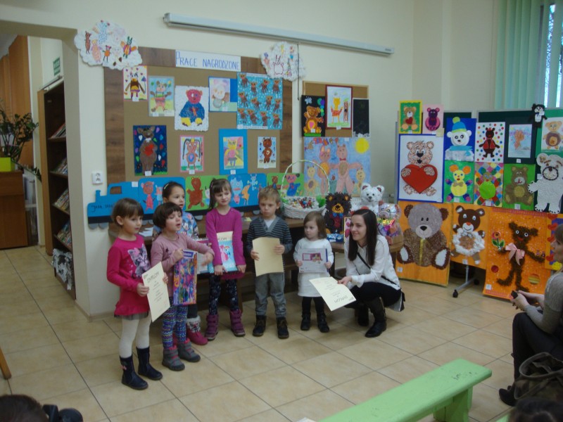 Jak co roku dzieci z naszego przedszkola brały udział w konkursie zorganizowanym z okazji obchodów Światowego Dnia Misia. Prace wykonane były różnorodnymi technikami plastycznymi: rysunek, malowany kredkami i farbami, wyklejanki oraz prace przestrzenne. Celem konkursu było zainteresowanie dzieci literaturą dziecięcą, zachęcenie do wypożyczenia i przeczytania książek oraz promowanie i rozwijanie wyobraźni twórczej i zdolności plastycznych.