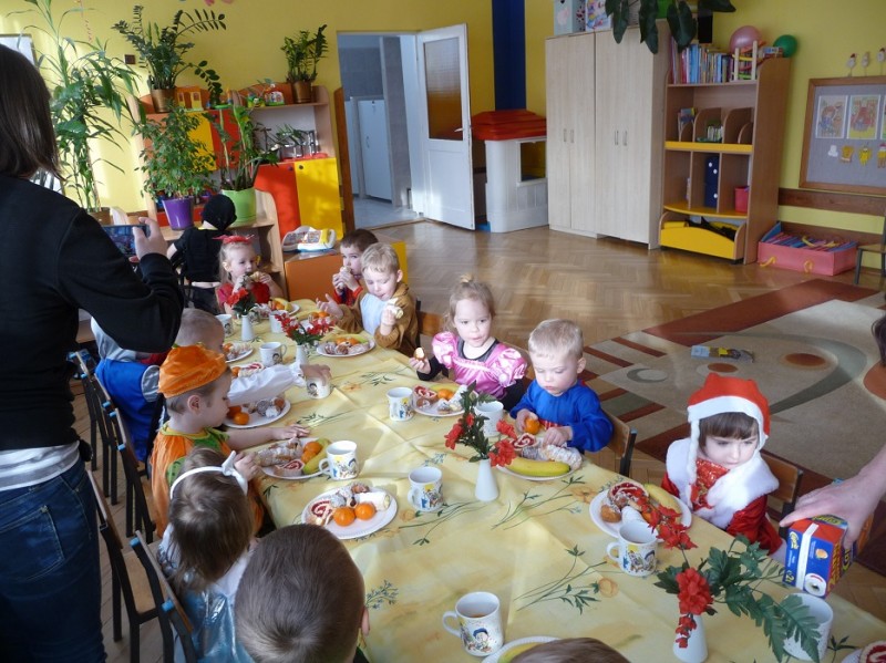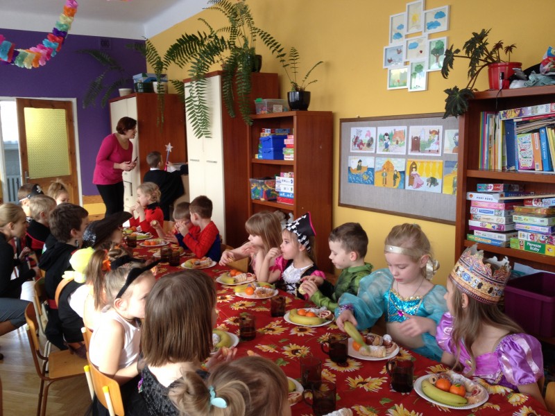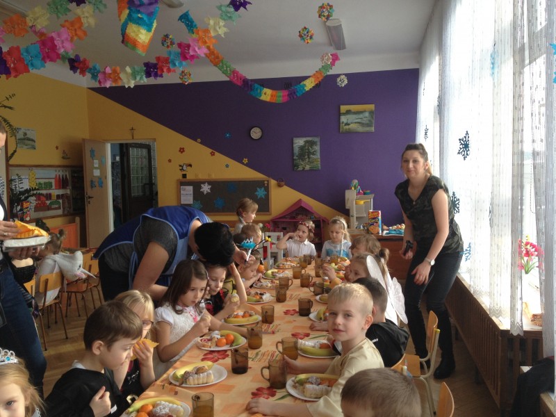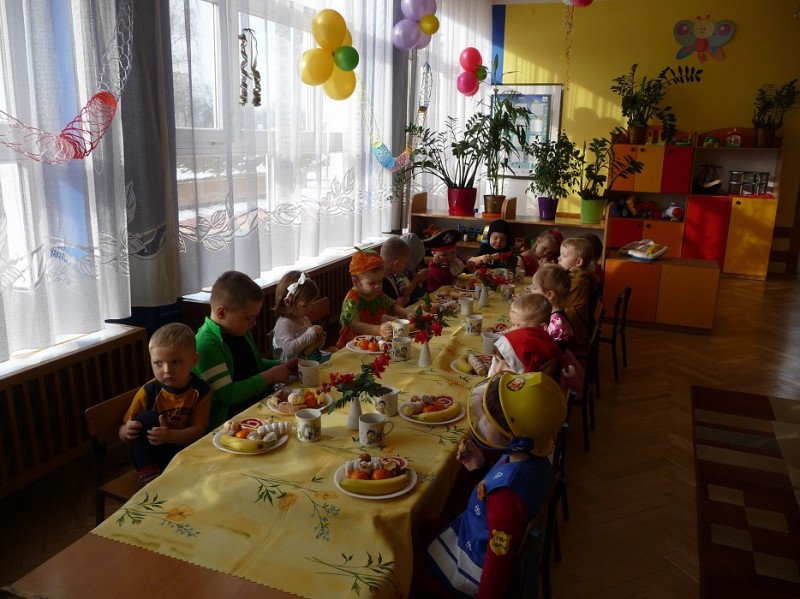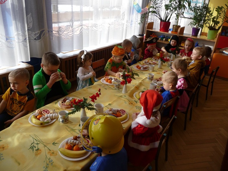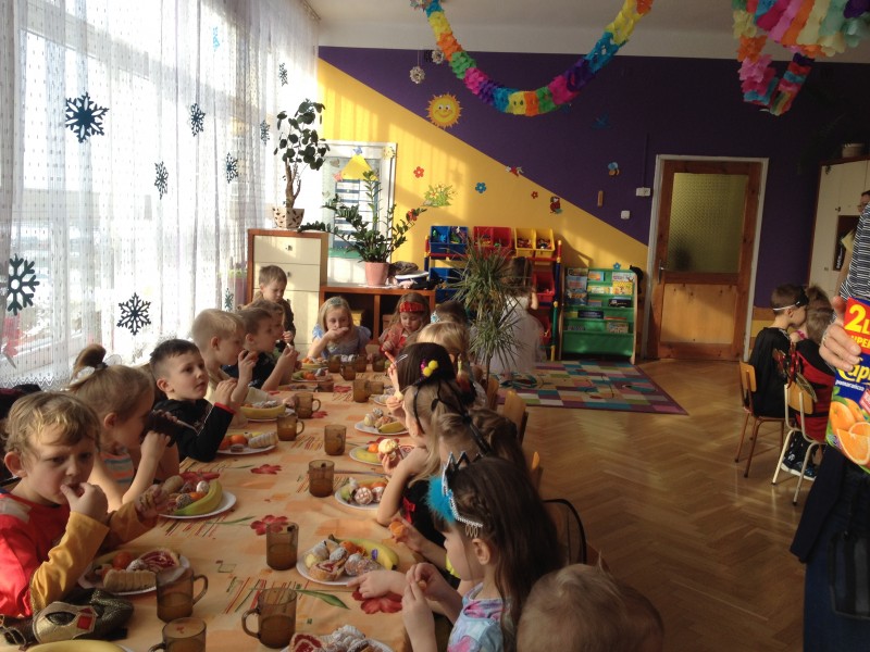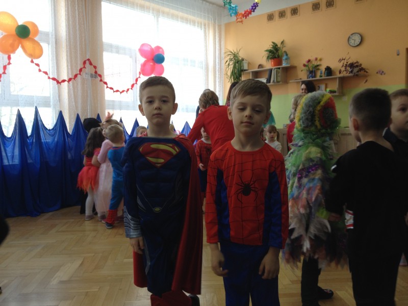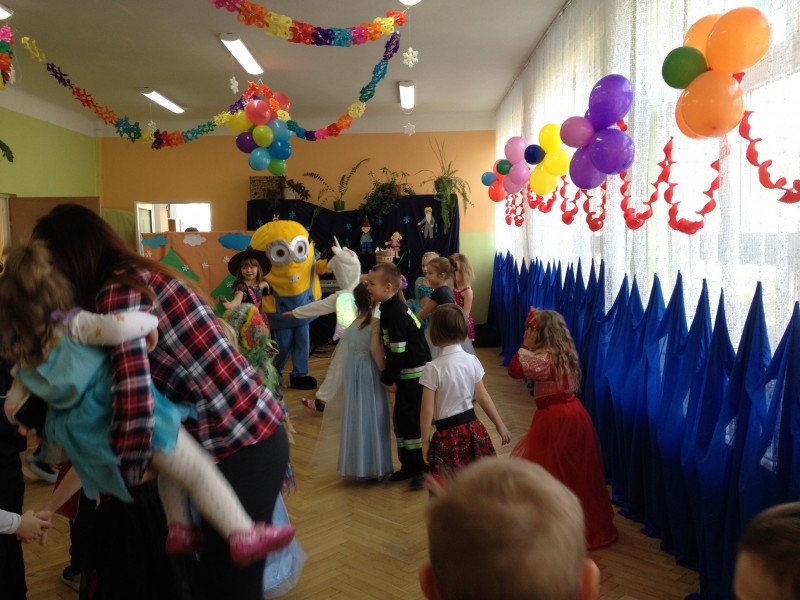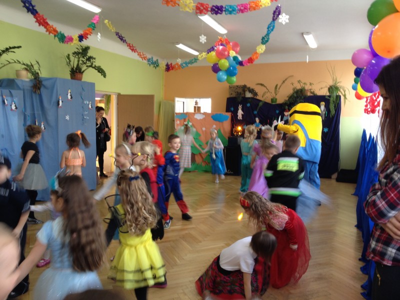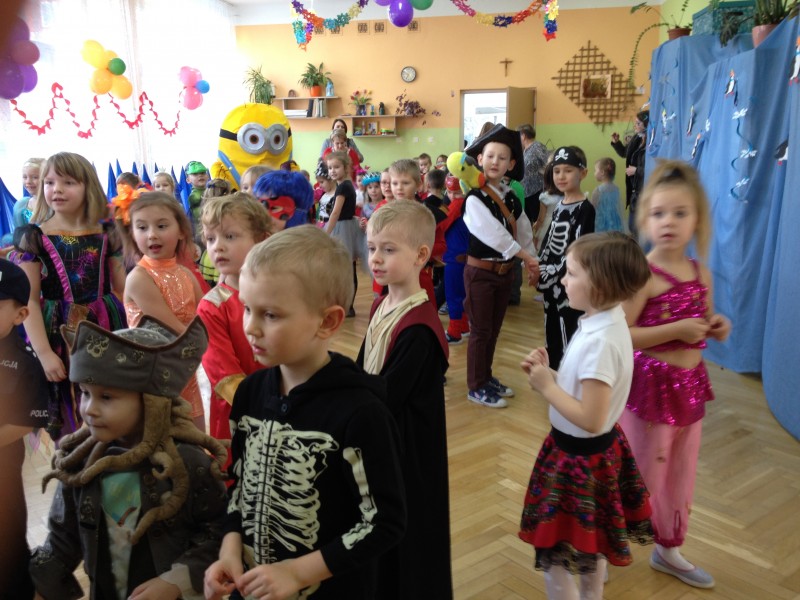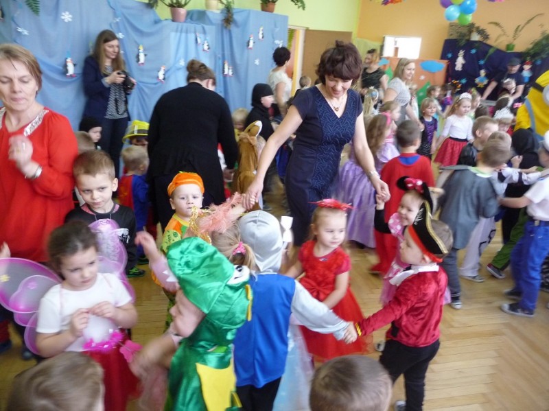 26 stycznia w naszym przedszkolu odbył się "Bal karnawałowy". W odświętnie udekorowanych salach, w ciekawych, kolorowych kostiumach, wszystkie przedszkolaki bawiły się przy rytmach różnorodnej muzyki, które zaproponował nam DJ. Zabawa przebiegała w miłej i radosnej atmosferze. Muzyka i tańce przeplatane były zabawami. W przerwie, aby złapać trochę powietrza, odsapnąć i nabrać sił do dalszej zabawy przedszkolaki miały okazję ugasić pragnienie i skonsumować coś słodkiego. Ten dzień był super!