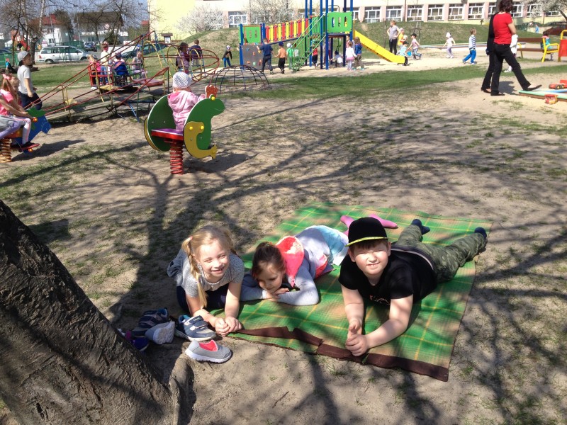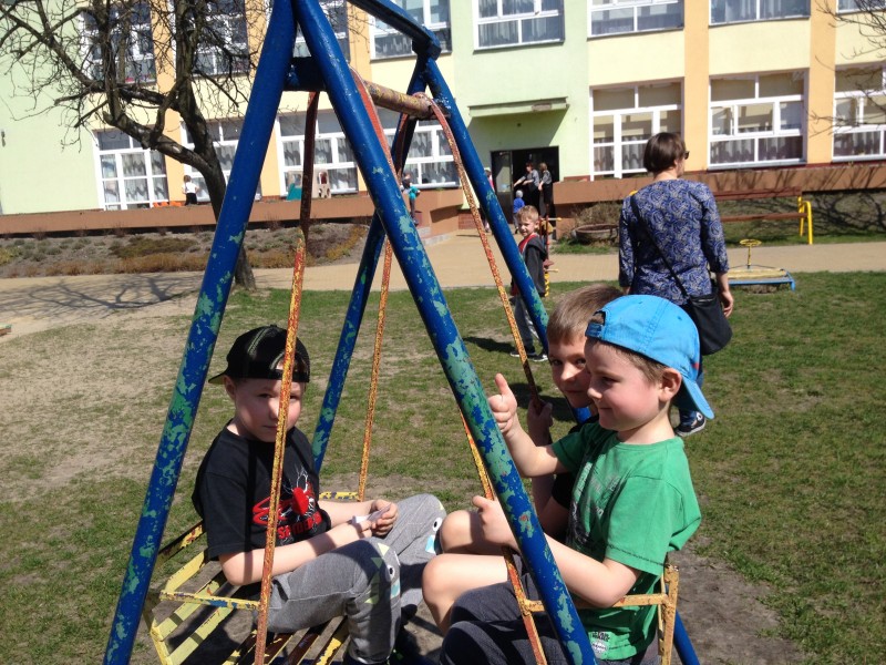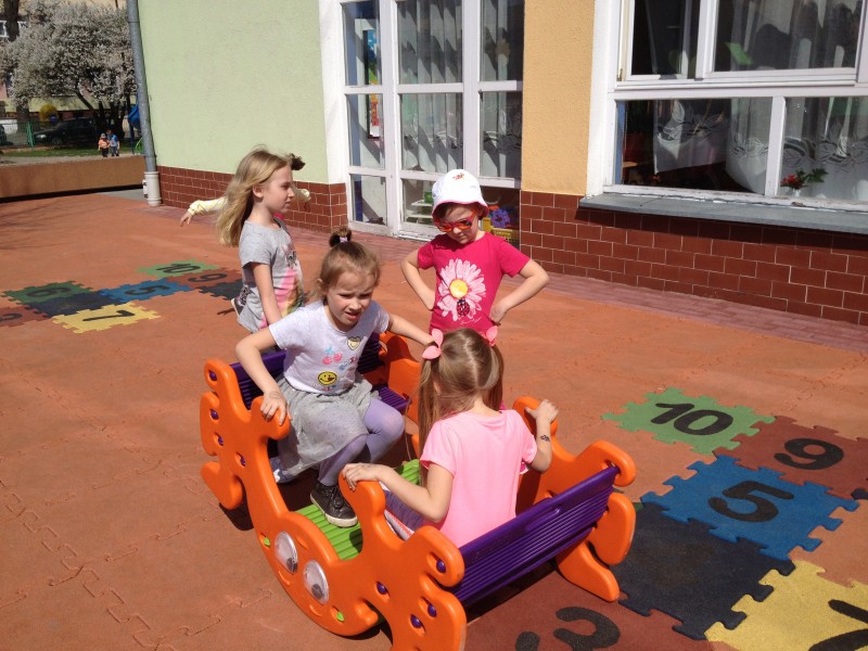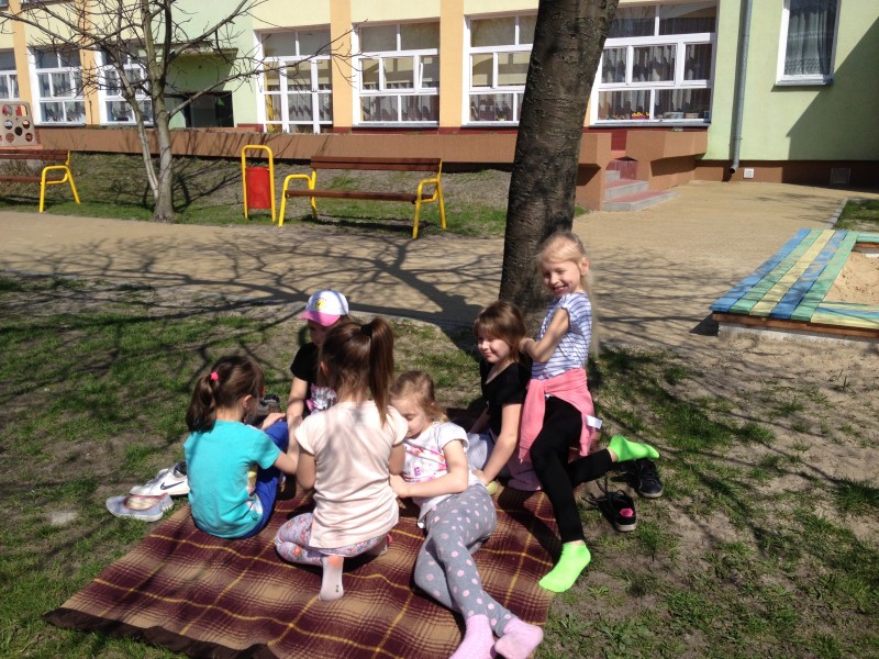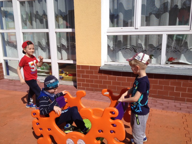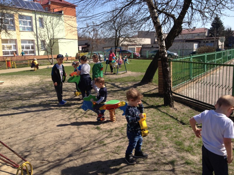 Bardzo ważnym elementem każdego dnia w przedszkolu jest przebywanie na świeżym powietrzu. Kiedy tylko pogoda pozwala wyruszamy na piesze wycieczki lub na zabawy w naszym ogrodzie.