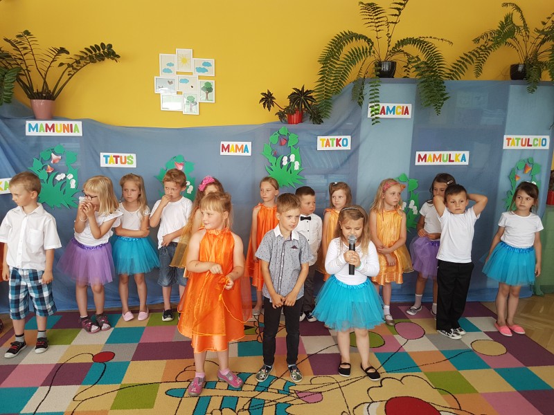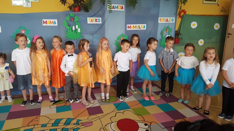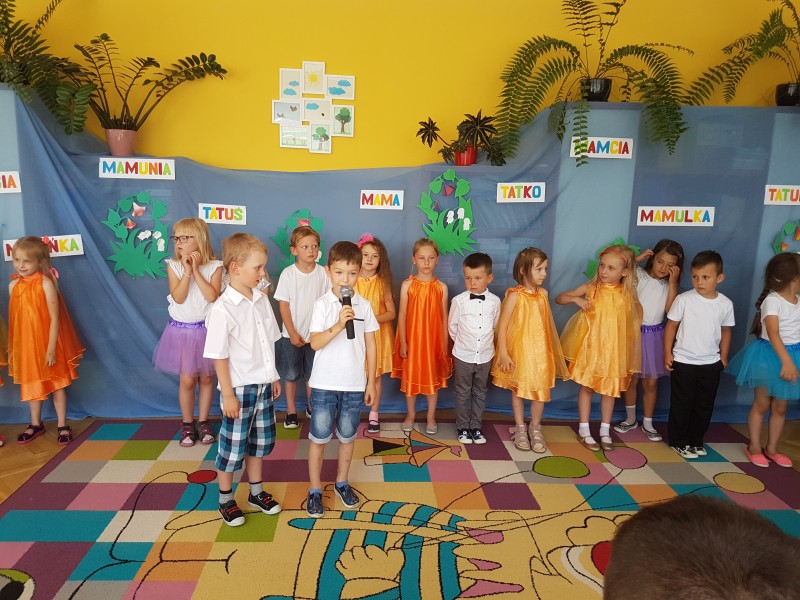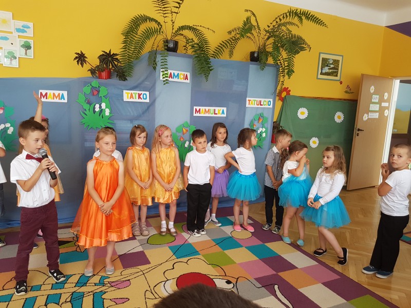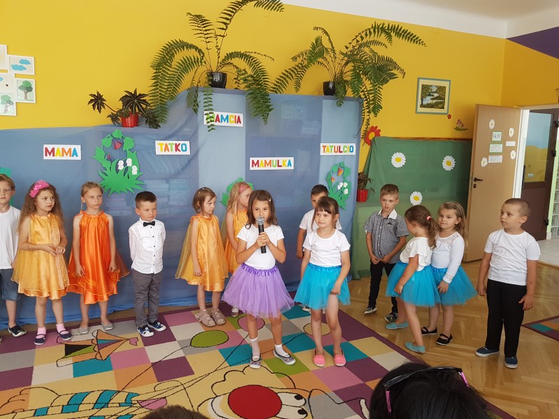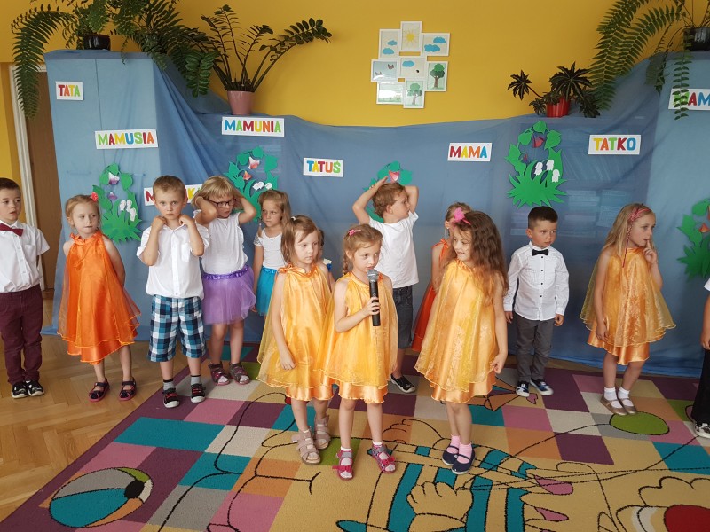Uroczystość Dnia Mamy i Taty to szczególna okazja, której towarzyszą niesamowite emocje, uśmiech, wzruszenie i duma z pociech. Wszyscy goście z zaciekawieniem i skupioną uwagą słuchali wystapienia swojego dziecka. Przedszkolaki zaprezentowały swoje umiejętności przed najbliższymi. Na tę okoliczność przygotowały dla rodziców część artystyczną: recytowały wiersze, śpiewały piosenki i tańczyły. Na koniec wszystkie dzieci odśpiewały "Sto lat" i wręczyły Rodzicom prezenty. Po zakończeniu oficjalnej części wszyscy zostali zaproszeni na słodki poczęstunek.