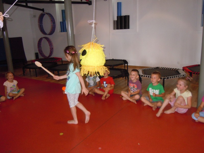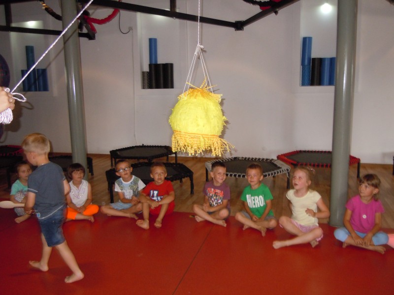 Już w przedszkolu dzieci wiedzą. że trzeba dbać o piękną i smukłą sylwetkę. Dziewczynki i chłopcy z grupy VII wybrały się więc do "Fitness Klubu" na zajęcia i zabawy prowadzone przez panią instruktor. Dodatkową niespodzianką i atrakcją podczas zabaw była piniata przygotowana przez jedną z mam. W środku...same wspaniałości! Zabawa była "mega fajna'jak określił jeden z uczestników.