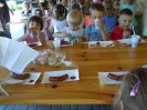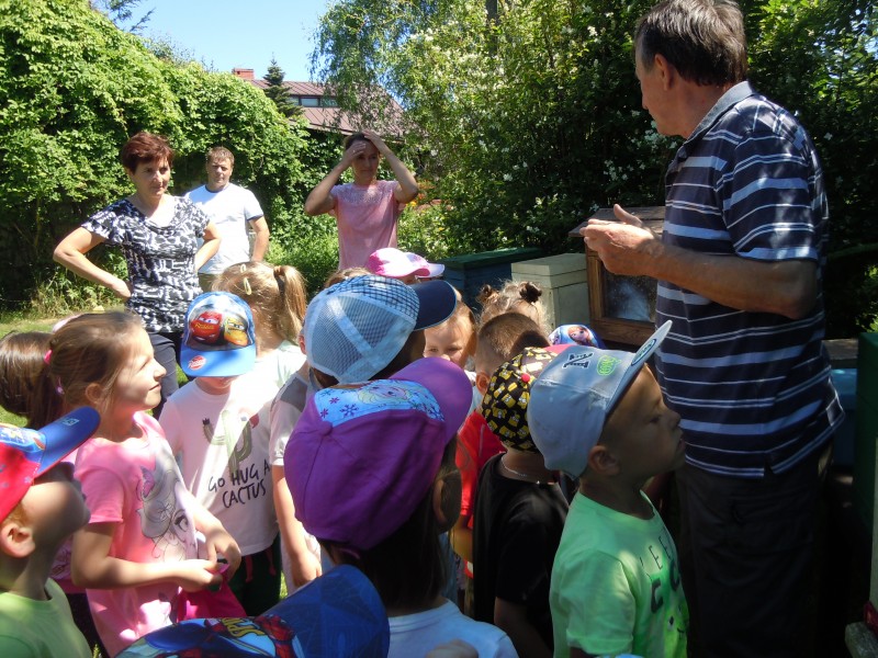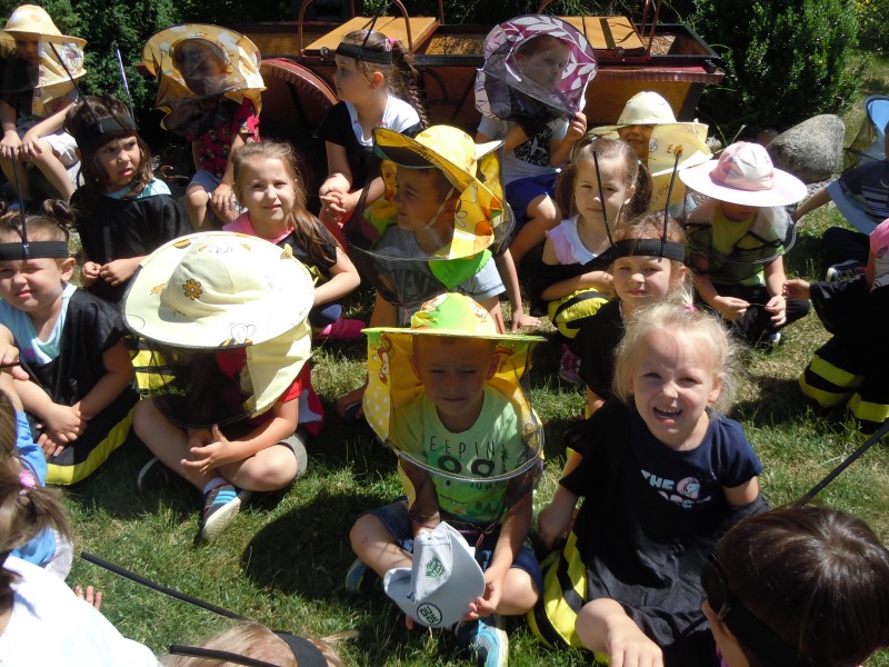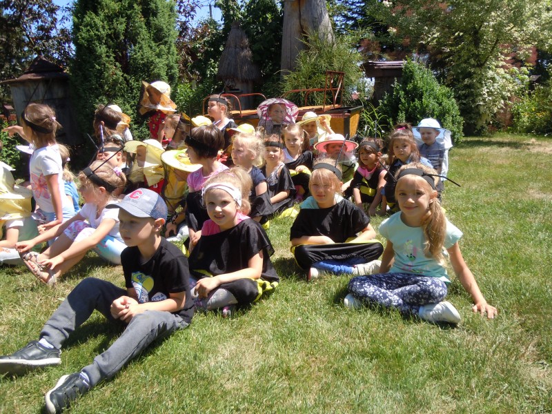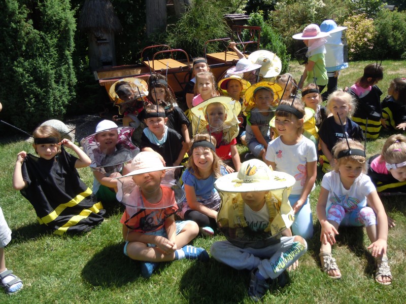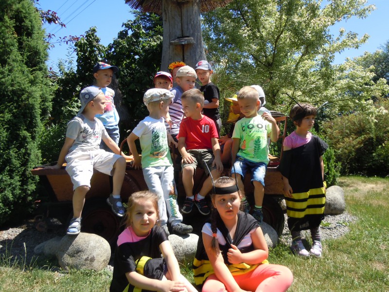 W dniu 7 czerwca dzieci z grupy VI i VII wybrały się na słodką wycieczką do gospodarstwa agroturystycznego "Ulik" w Mokrymlipiu. Tam czekało na nich mnóstwo atrakcji - wśród nich: zwiedzanie pasieki, poznawanie ciekawostek z życia pszczół, oglądanie wnętrza ula, izby muzealnej oraz degustacja miodów z pięknego Roztocza. Dzieci poprzebierane za wesołe pszczółki i pszczelarzy dokazywały na zielonej trawie oraz jadły kiełbaski z ogniska. W powrotną drogę zabrały ze sobą radosne wspomnienia i zdrowy, pachnący miód.