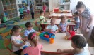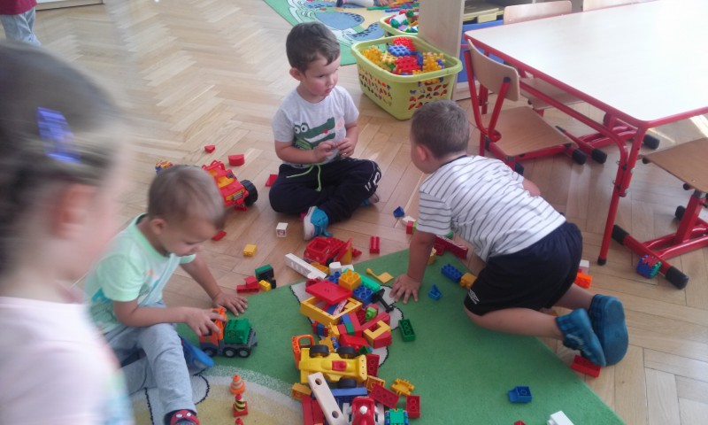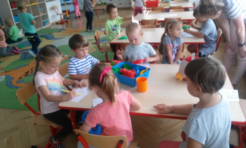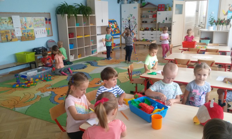 W trakcie dnia zabawa i zajęcia edukacyjne przeplatają się ze sobą a powtarzalność różnego rodzaju aktywności dzieci wyznacza ,,Ramowy rozkład dnia”. W ciągu całodniowego pobytu dzieci w przedszkolu mogą: bawić się same, korzystać z ,,kącików tematycznych”, uczestniczyć w zajęciach edukacyjnych i zajęciach dodatkowych, spożywać posiłki, korzystać z zajęć specjalistycznych oraz spędzać czas na powietrzu. Poniżej prezentujemy zdjęcia jednego dnia w przedszkolu dzieci z gr.III.
