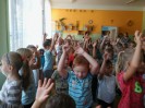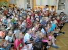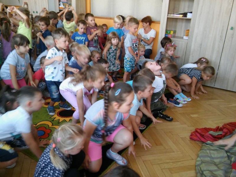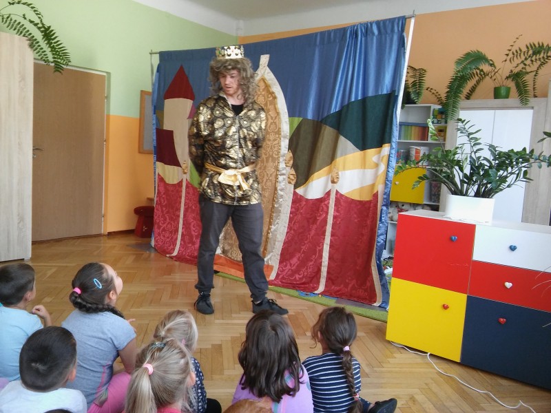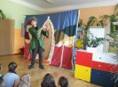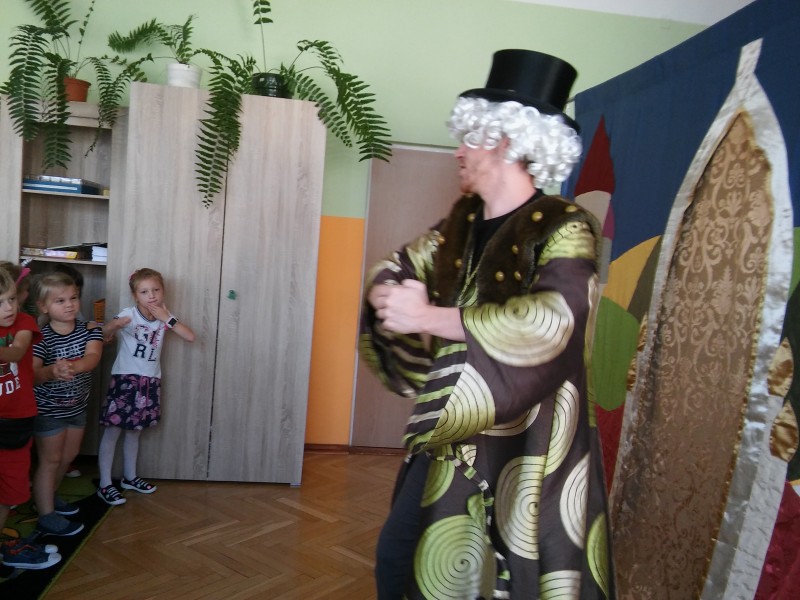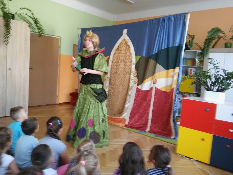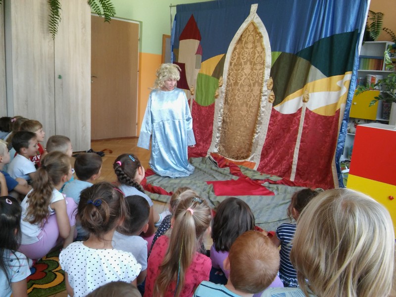 W każdym miesiącu gościmy w przedszkolu teatry dla dzieci. Spotkania takie dają dzieciom wiele radości, rozwijają wyobraźnię i wrażliwość estetyczną, a także poszerzają wiedzę o teatrze. Często w różnego typu inscenizacjach dzieci są włączane w aktywne uczestnictwo w zabawach inscenizowanych, w naturalny sposób wcielają się w rolę aktorów. Tak było i tym razem. Przedstawienie we wrześniu nosiło tytuł ,,Opowieść o groszkach, księżniczce i miłości”