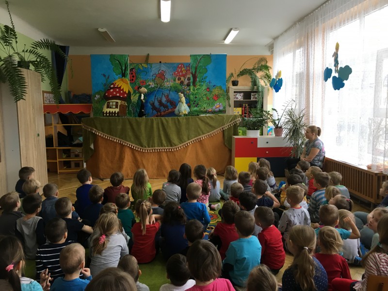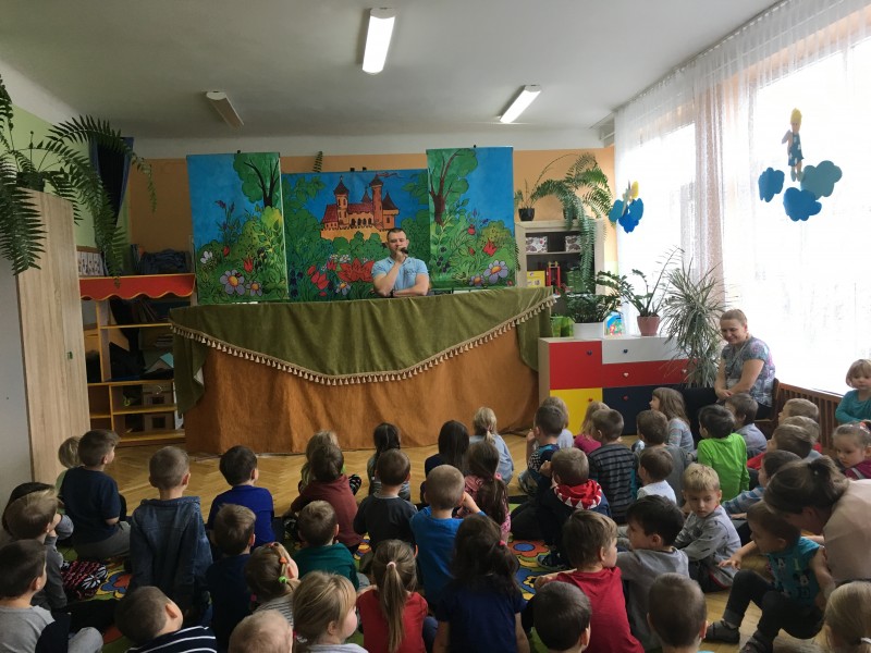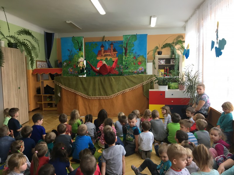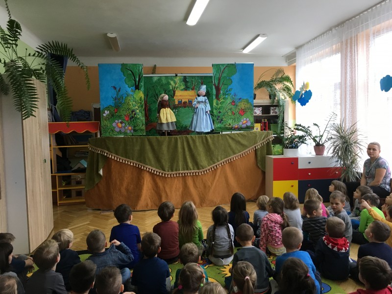 W środę 23 stycznia gościliśmy w naszym przedszkolu objazdowy teatrzyk kukiełkowy z przedstawieniem pt. "Calineczka". W świat baśni przeniosła nas piękna muzyka i kukiełki. Dzieci z zaciekawieniem śledziły losy tytułowej bohaterki. Ciekawe przygody oraz zwierzątka, które spotykała na swojej drodze mała Calineczka sprawiły, że na twarzach przedszkolaków często gościł uśmiech. Po zakończeniu teatrzyku, dzieci nagrodziły aktorów gromkimi brawami.