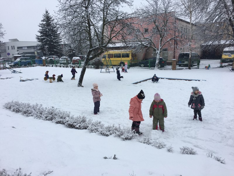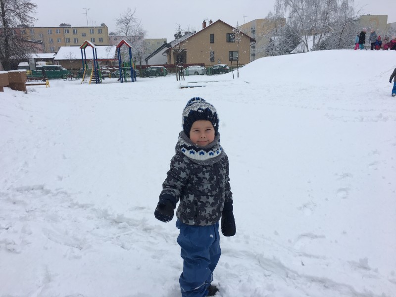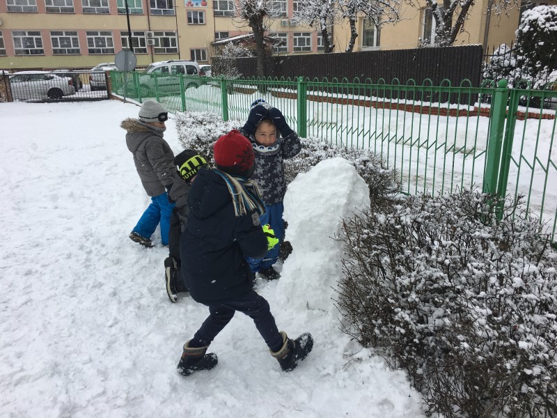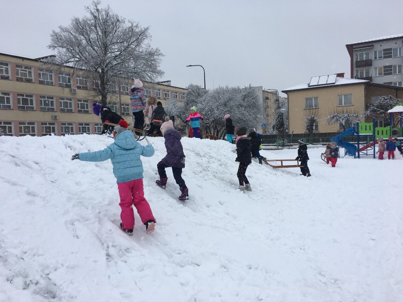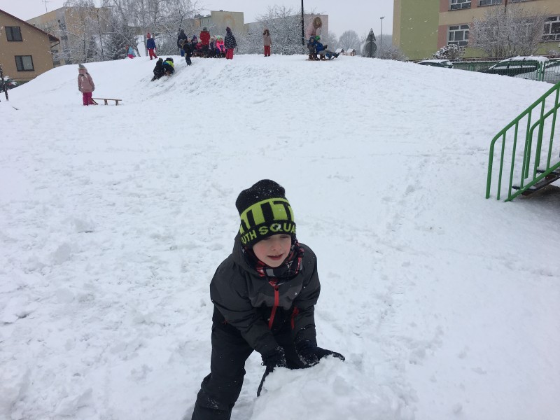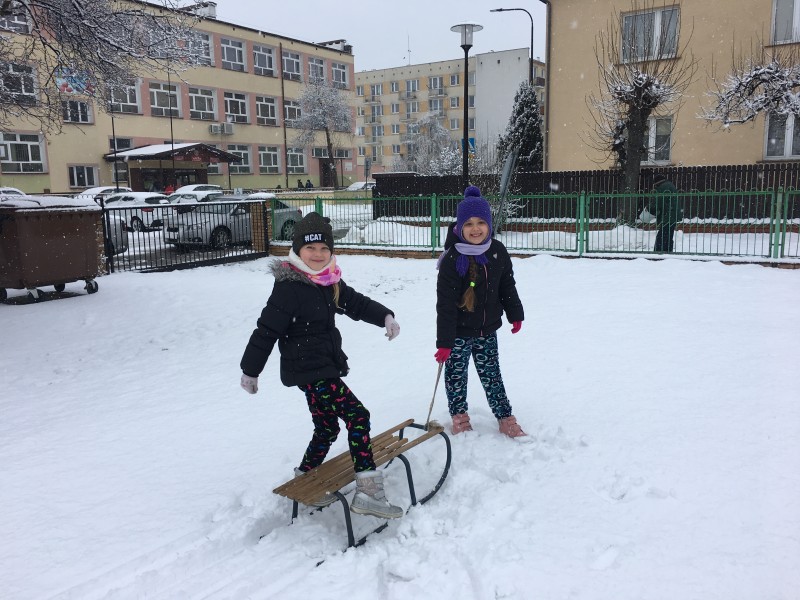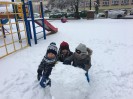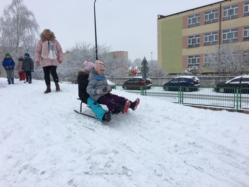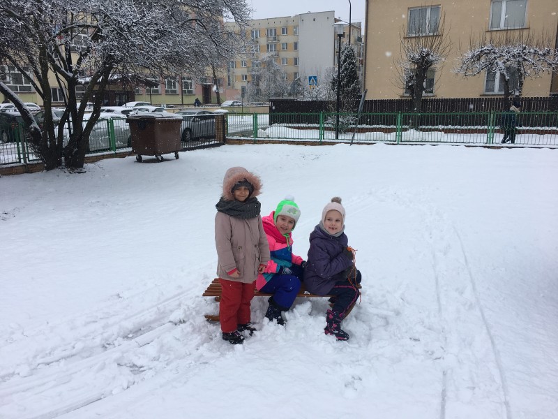 Dzieci kochają zabawy na świeżym powietrzu, szczególne wtedy, gdy wokoło pełno białego puchu. Tegoroczna zima płata nam figle, pogoda zmienia się co kilka dni. Dlatego korzystając z jej uroku postanowiliśmy pobawić się na śniegu w naszym przedszkolnym ogrodzie. Dzieci oddały się zimowemu szaleństwu, zjeżdżając na sankach, rzucając śnieżkami do siebie, a także "atakując" kulami śniegowymi swoje panie (oczywiście zachowując zasady bezpieczeństwa). Po "górkowych" wyczynach przyszedł czas na ulepienie bałwana. Po powrocie do budynku przedszkola - niektóre rękawiczki i spodnie były mokre… ale serca szczęśliwe.