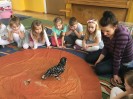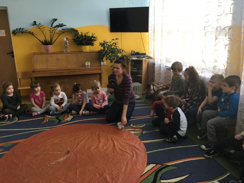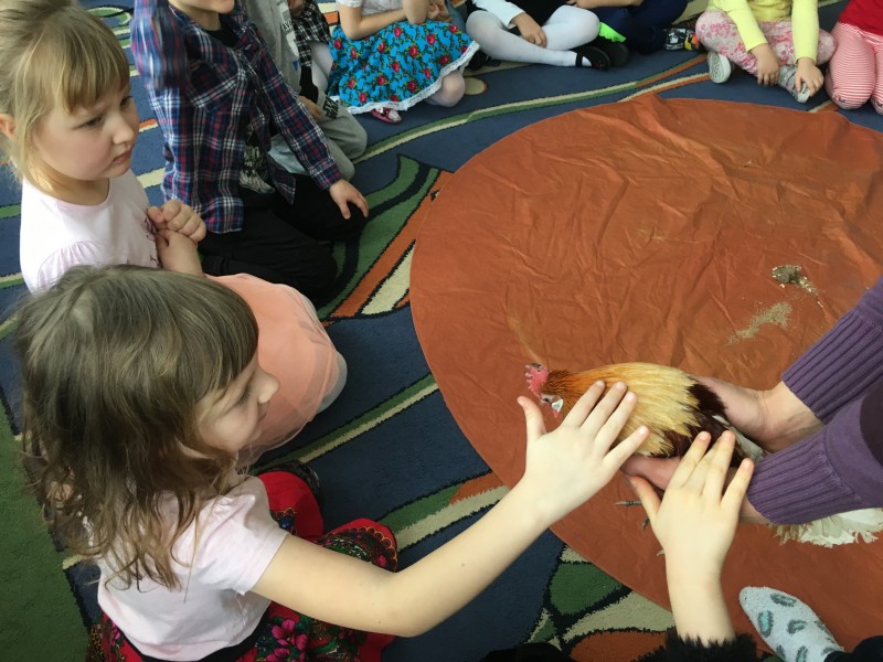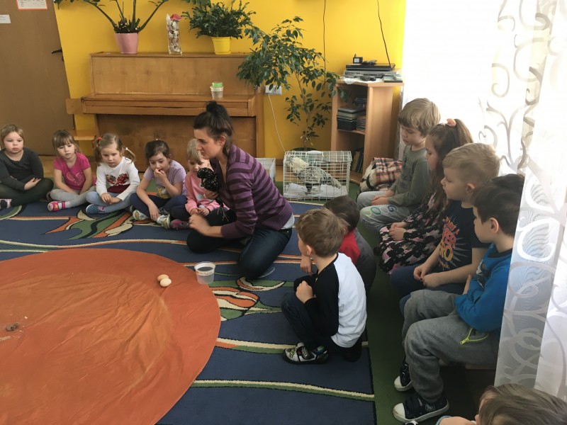 Spotkanie z żywymi okazami kurek było nowym doświadczeniem dla przedszkolaków i okazją do poznania ich wyglądu, zachowania, sposobu poruszania się czy sposobu odżywiania. Dzieci wiedzą już skąd się bierze kura i skąd się bierze jajko? … ale co było pierwsze … jajko czy kura?