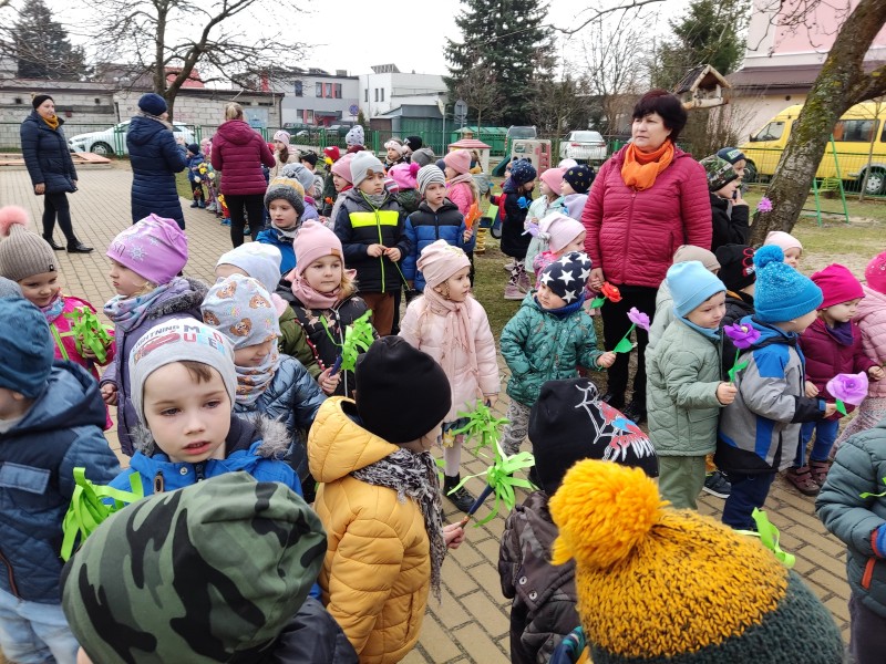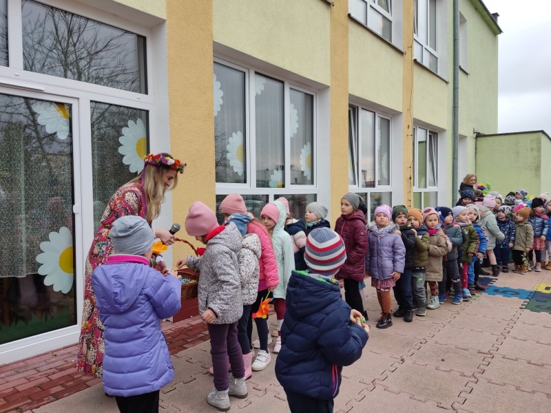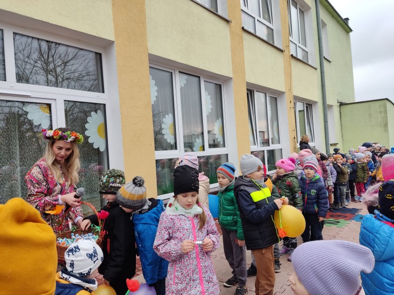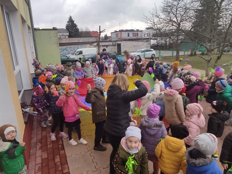 21 marca wszystkie dzieci z naszego przedszkola świętowały Pierwszy Dzień Wiosny. Dla każdego przedszkolaka jest to bardzo wyczekiwane wydarzenie. Choć pogoda nie była zbyt wiosenna wyszliśmy na plac przedszkola, gdzie pożegnaliśmy zimę wraz z Marzanną. Dodatkowo dzieci próbowały odstraszyć zimę, śpiewając głośno piosenki o wiośnie. Pani Iwonka przyniosła list, który przysłała dzieciom pani Wiosna, a pani Asia odczytała go głośno. Następnie reprezentanci z wszystkich grup zebrali się by odszukać panią Wiosnę. Wkrótce wrócili prowadząc Ją wesoło. Pani Wiosna miała dla dzieci kilka zadań do wykonania. W zamian za to obiecała pozostać z nami na jakiś czas. Mamy nadzieję, że dzięki zaangażowaniu naszych przedszkolaków wiosna zawita do nas na dobre, a wraz z nią ciepłe dni, z których będziemy czerpać radość.