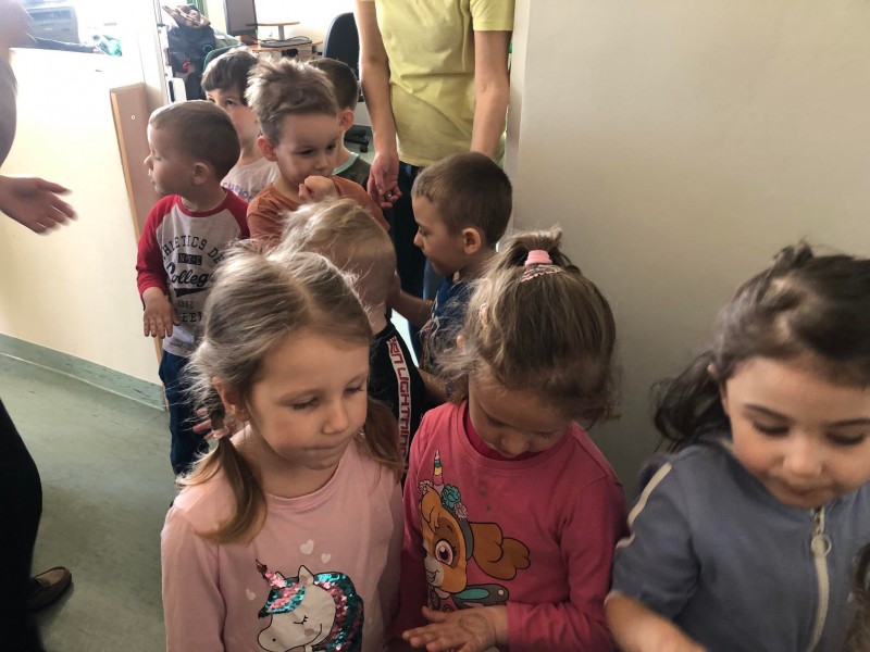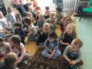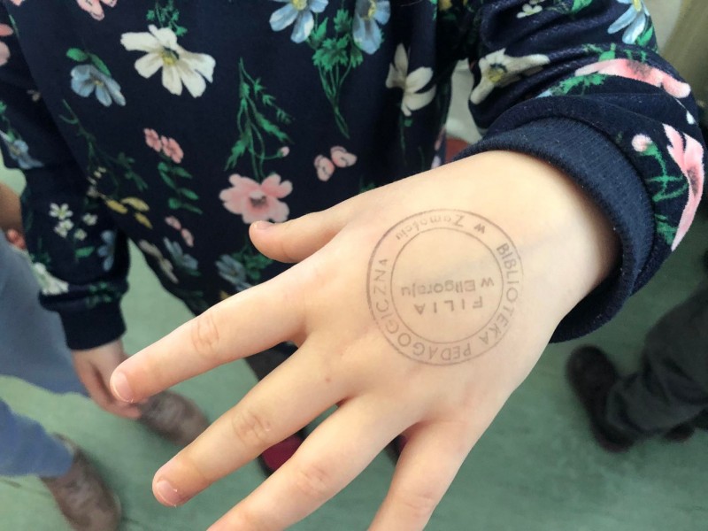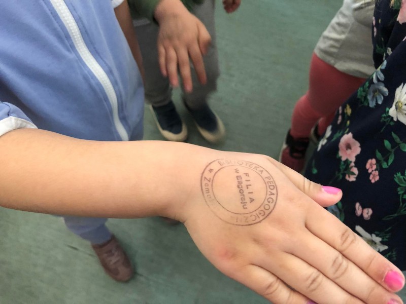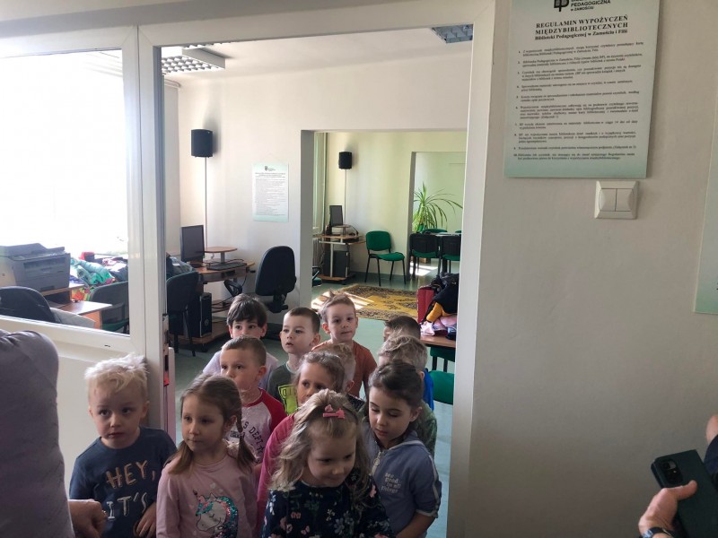 Kontynuując wzbogacanie wiadomości o książce przedszkolaki dzisiaj odwiedziły Miejską Bibliotekę Pedagogiczną w Biłgoraju. Poznały tam nowe słowa tj. księgozbiór, czytelnik, wypożyczalnia. Oglądały pomieszczenie, w którym na niezliczonej ilości regałów i półek stoi tysiące książek. Dzieci były zachwycone. Dostały od pani Cecylii pamiątkowe stempelki. Ponadto wysłuchały opowiadania "O panach Palcach", w którym to bardzo aktywnie uczestniczyły pokazując razem z panią odpowiedni paluszek.