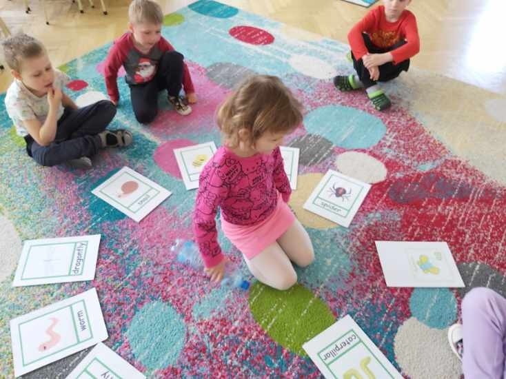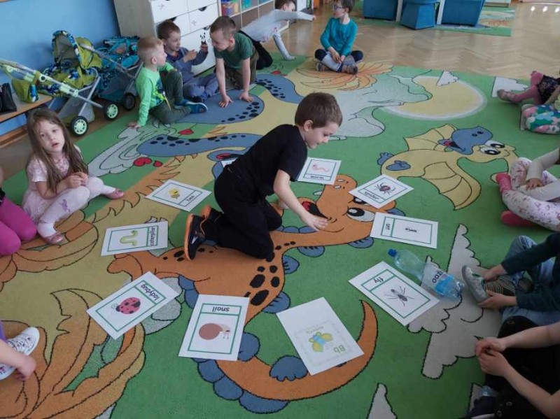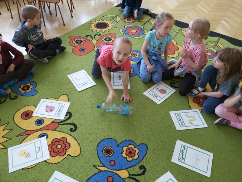 Z języka angielskiego ambitnie już za nami poznane czasowniki ruchu- swim, jump,run,climb,stand, walk. Dzieci poznały też różne sporty oraz owady znad łaki (bee, fly,dragonfly,ant,spider,ladybird,butterfly, caterpillar).