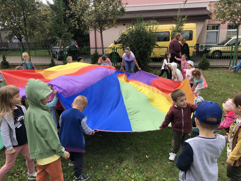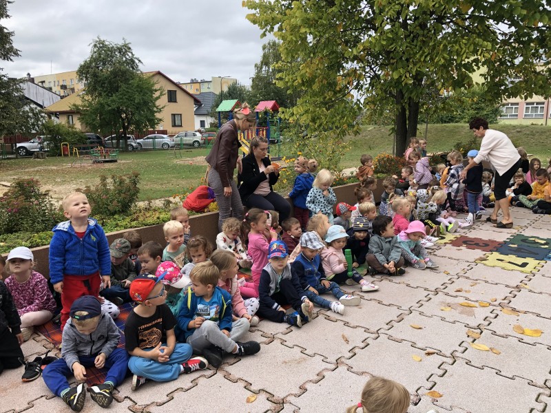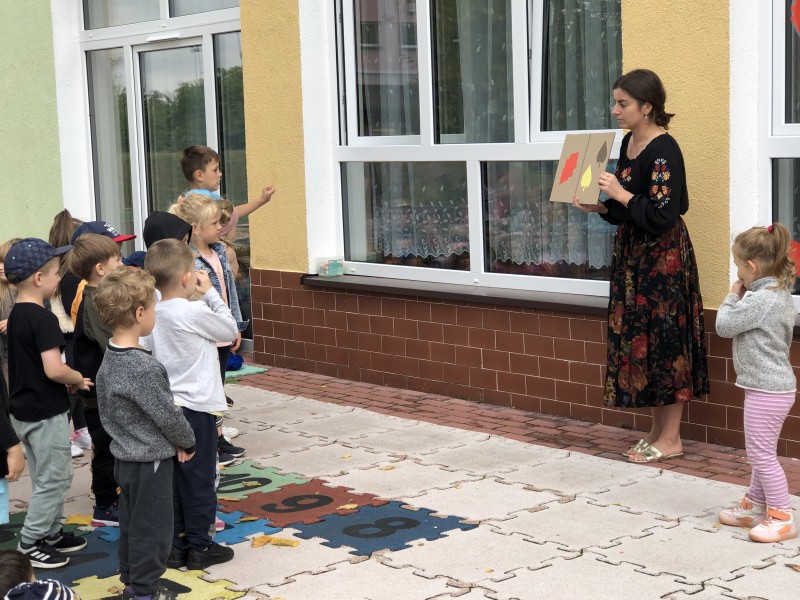 Wrzesień nierozerwalnie związany jest z początkiem roku szkolnego. Jest to też czas, kiedy pożegnać należy słoneczne lato i powitać kolorową, choć czasami i deszczową, jesień. Z okazji Pierwszego Dnia Jesieni warto przeprowadzić z przedszkolakami zajęcia dotyczące tej pory roku. Choć kalendarzowa jesień zawitała do nas już w sobotę nasze przedszkole uczciło to wydarzenie dopiero dzisiaj. Przedszkolaki odgadywały zagadki o jesieni, namalowały piękny portret Pani Jesieni oraz wykonały zadania, które pozostawiła dla nich Pani Jesień. Cała impreza odbyła się na balkonie przedszkolnym.
